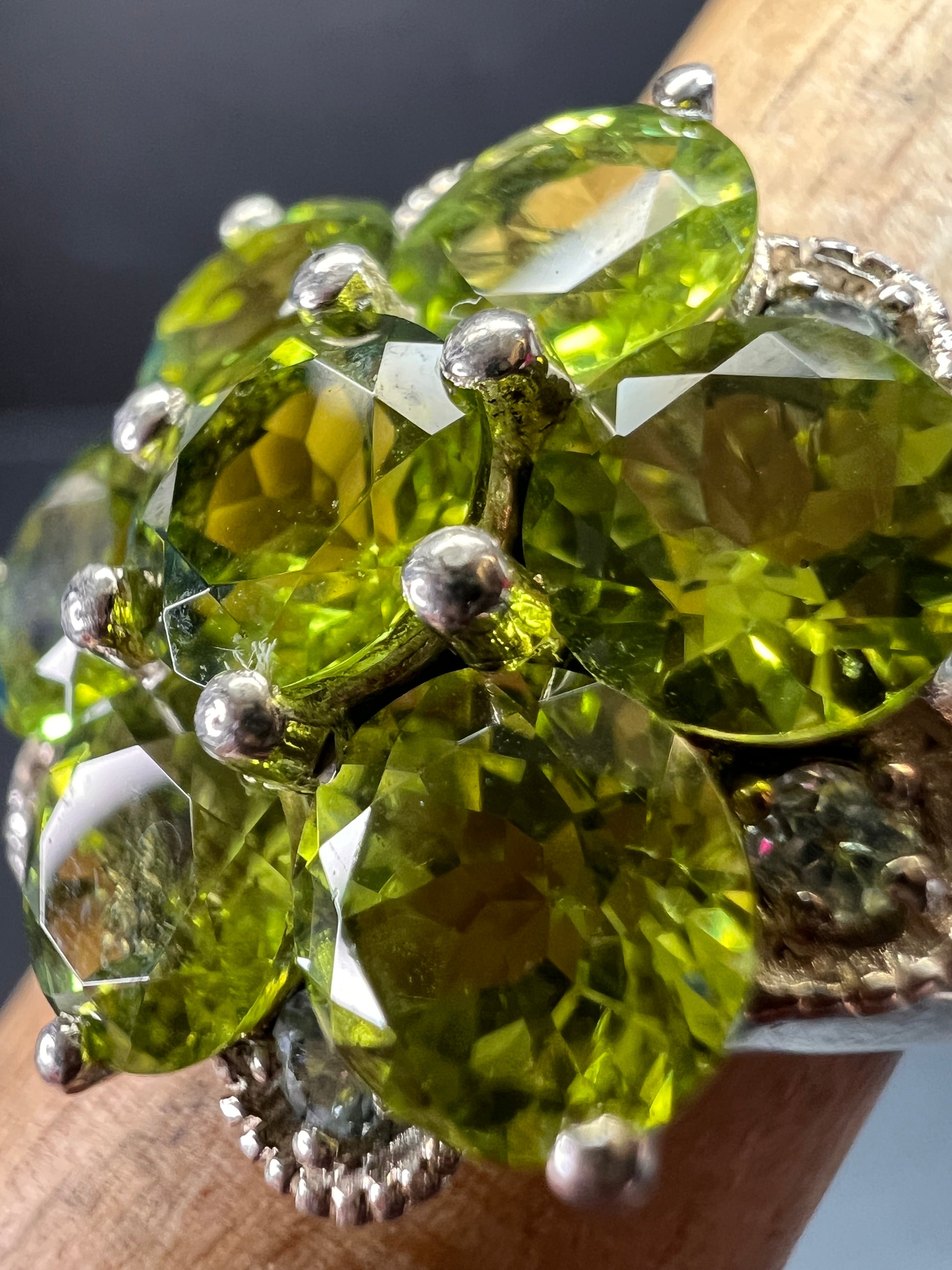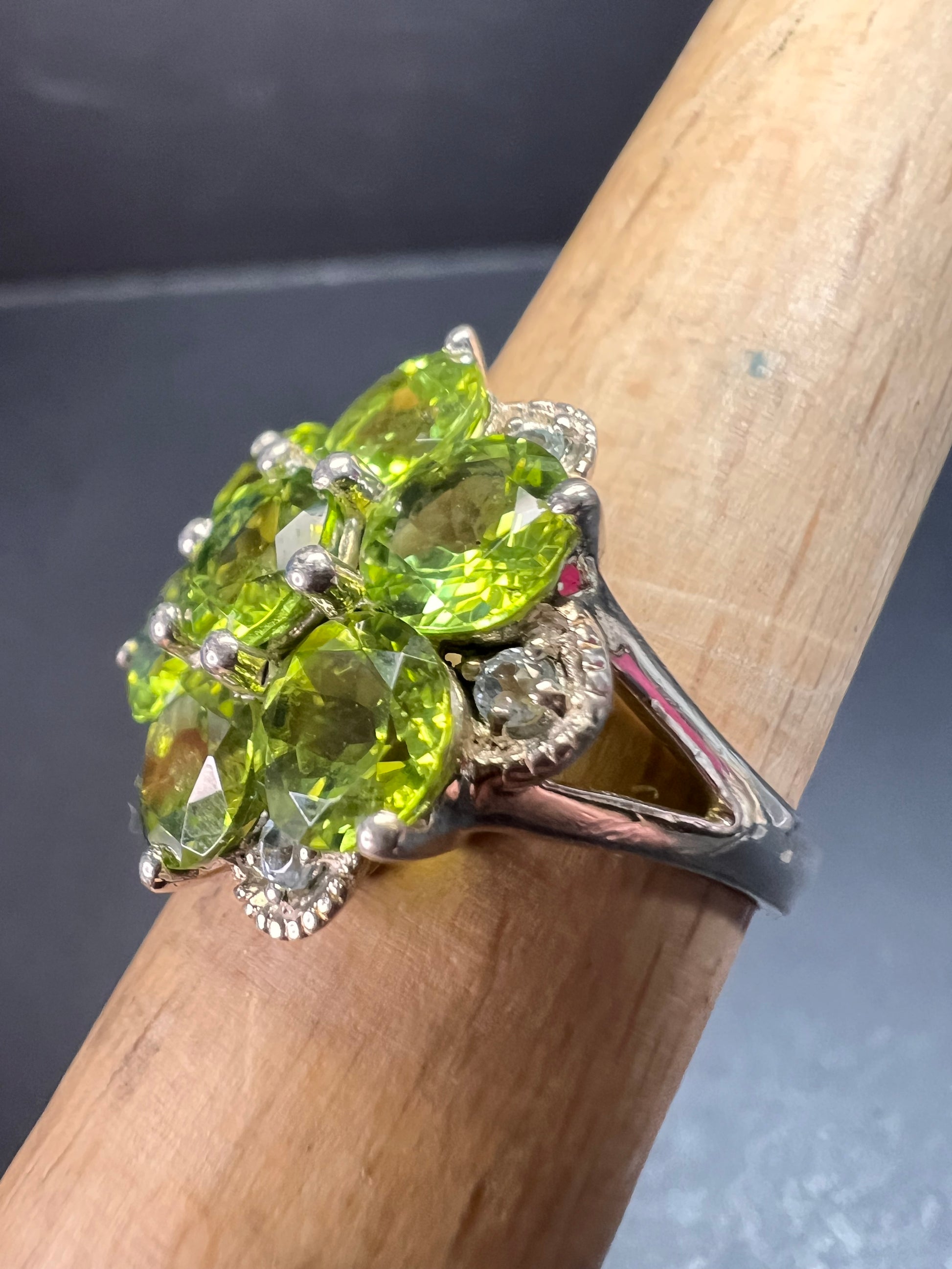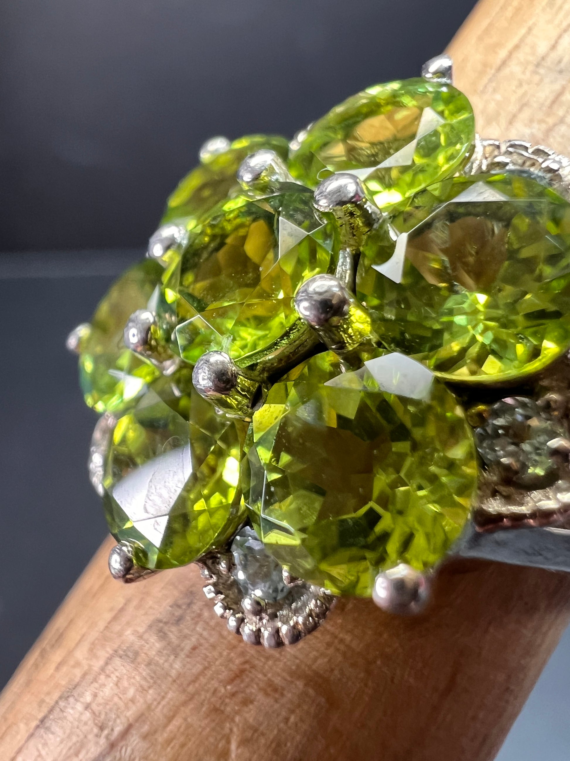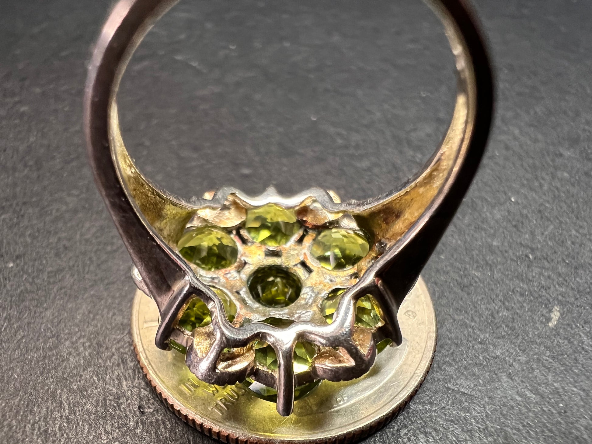 Vintage peridot and aquamarine sterling silver cluster ring size 7