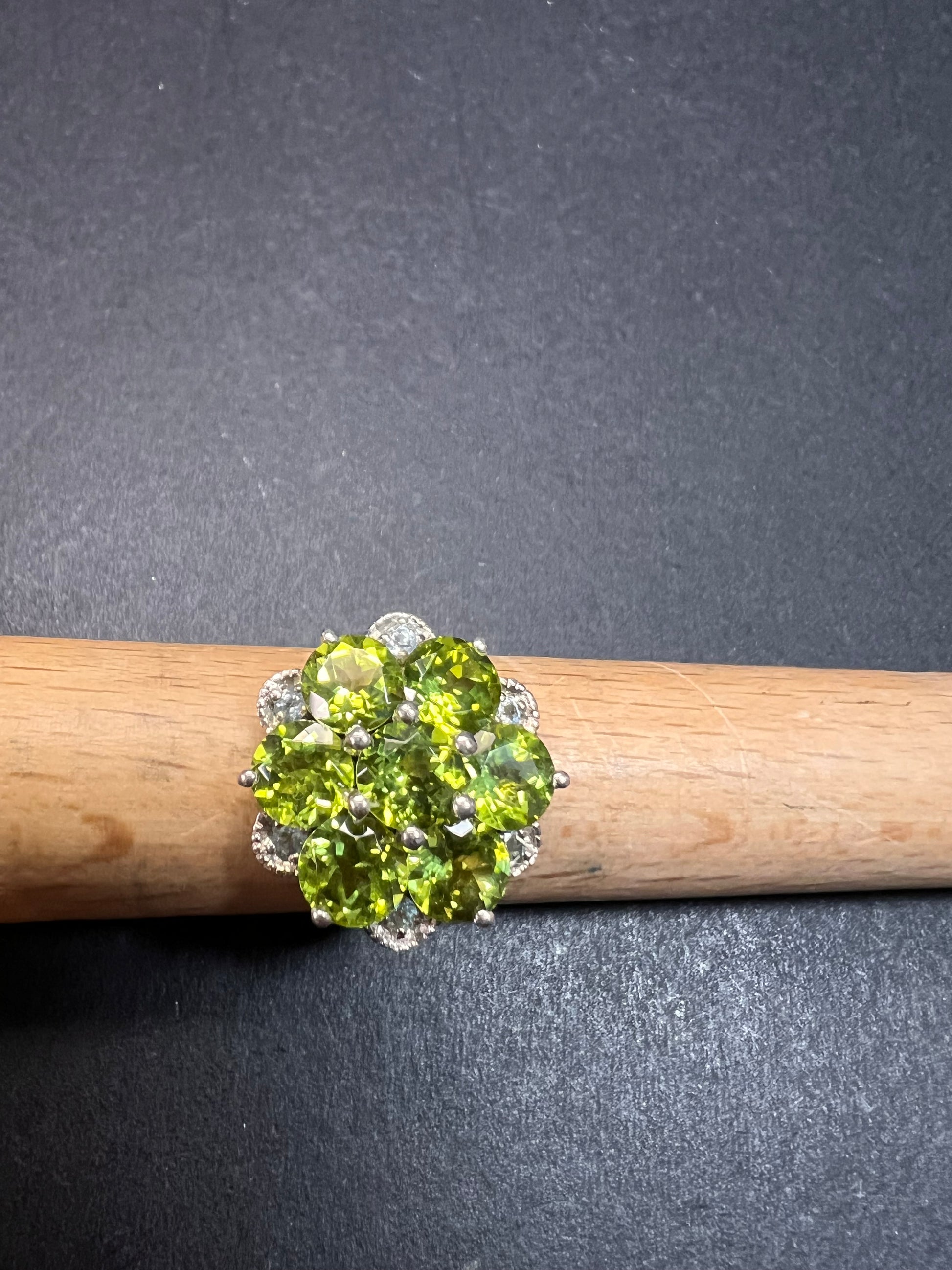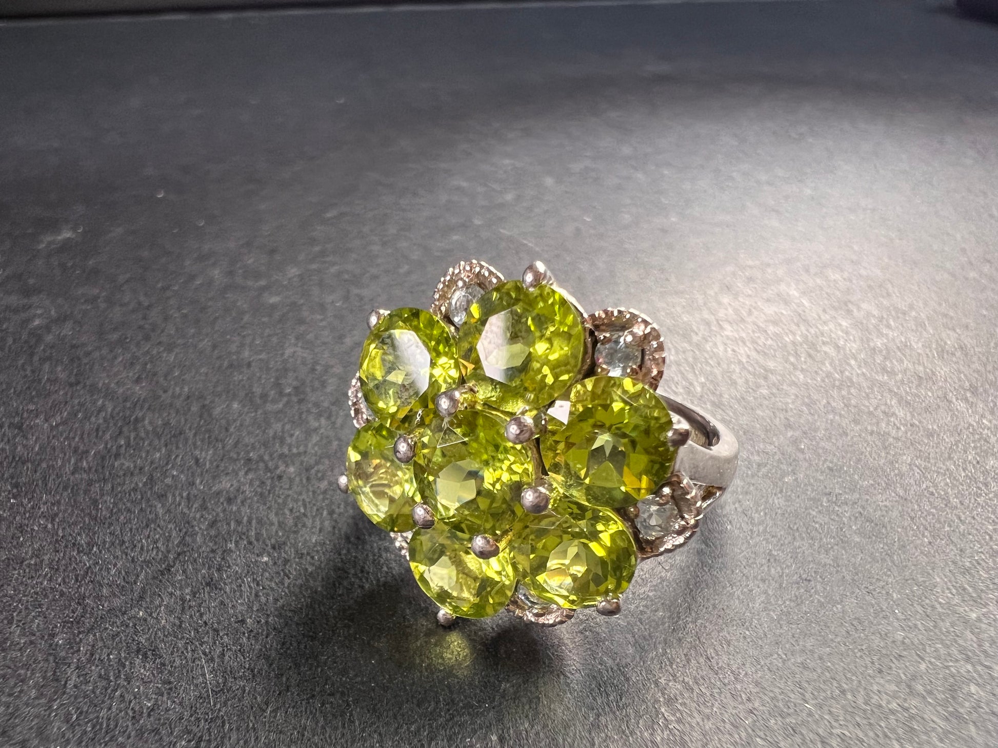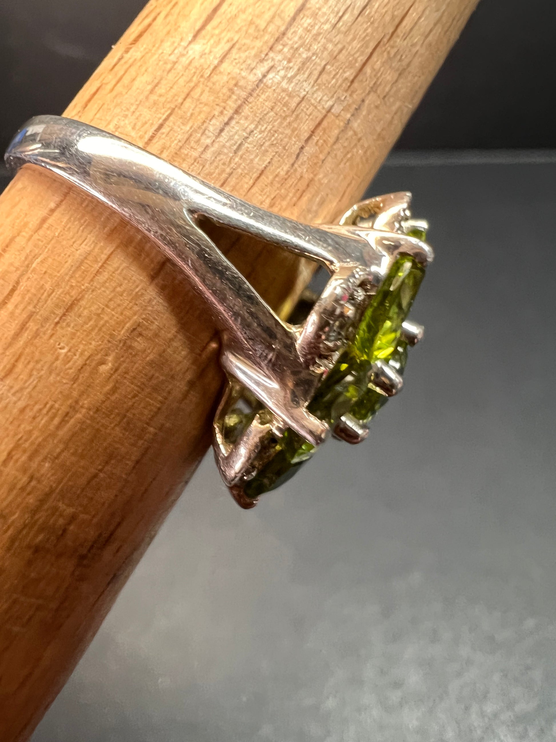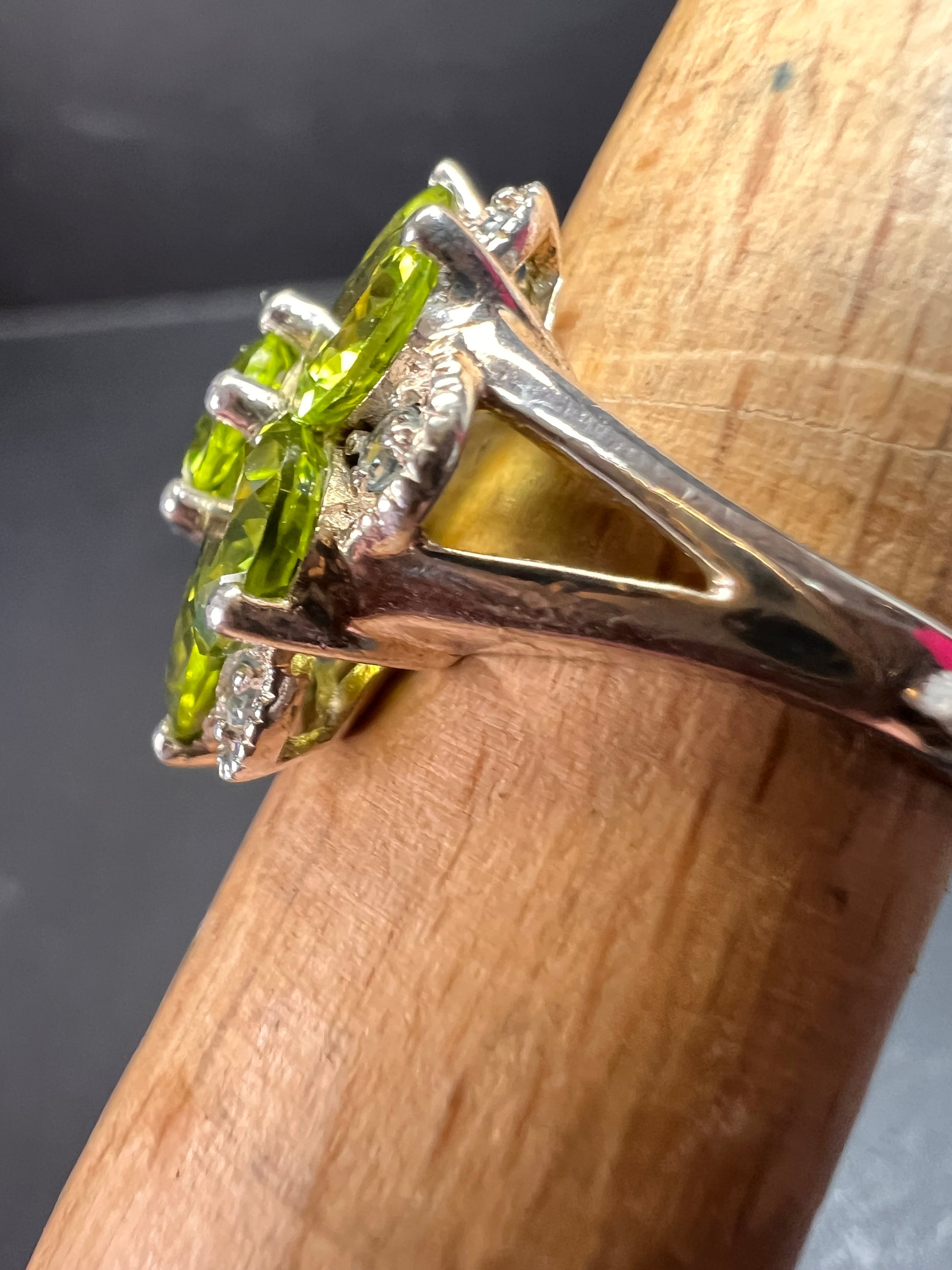 Vintage peridot and aquamarine sterling silver cluster ring size 7