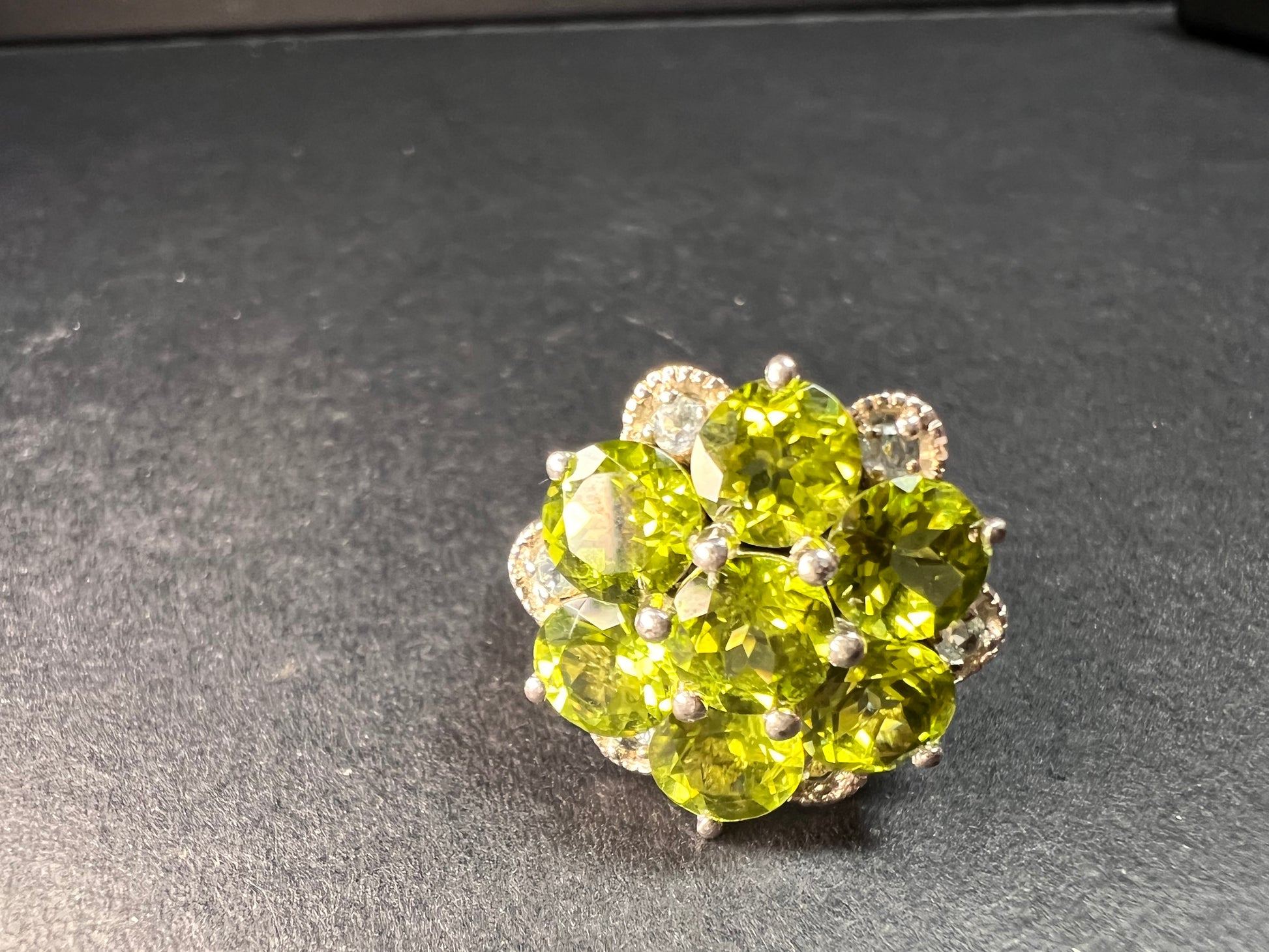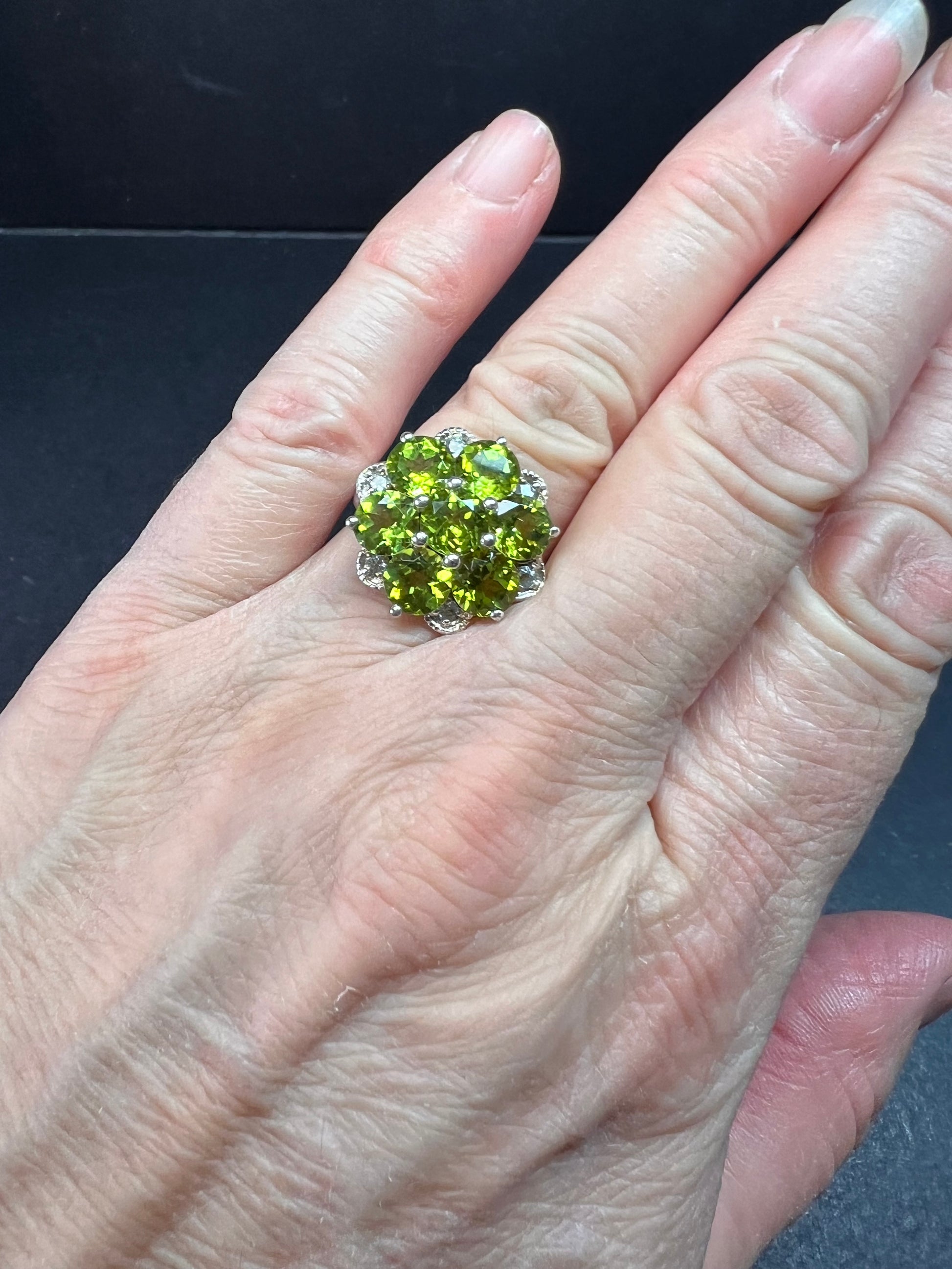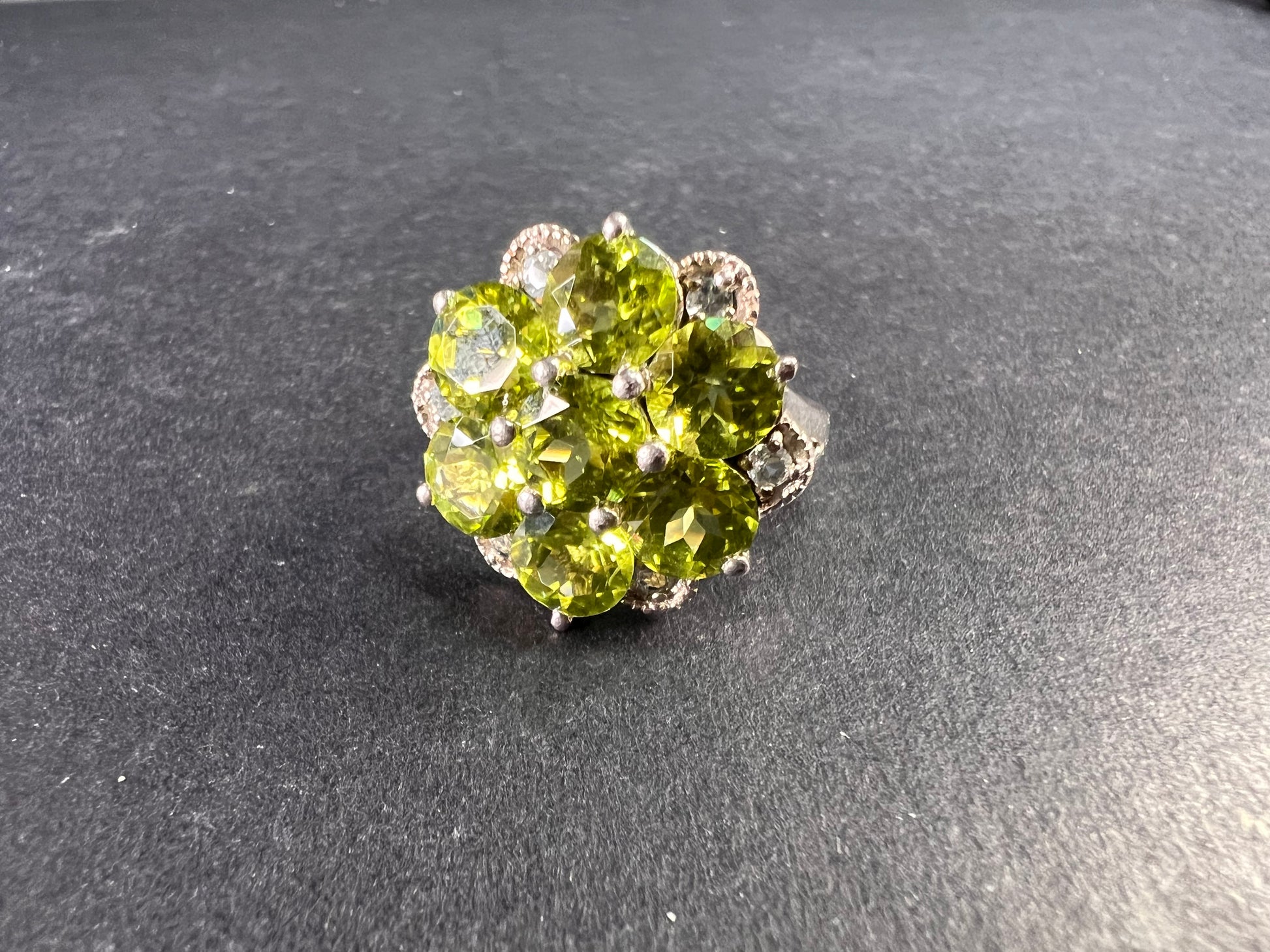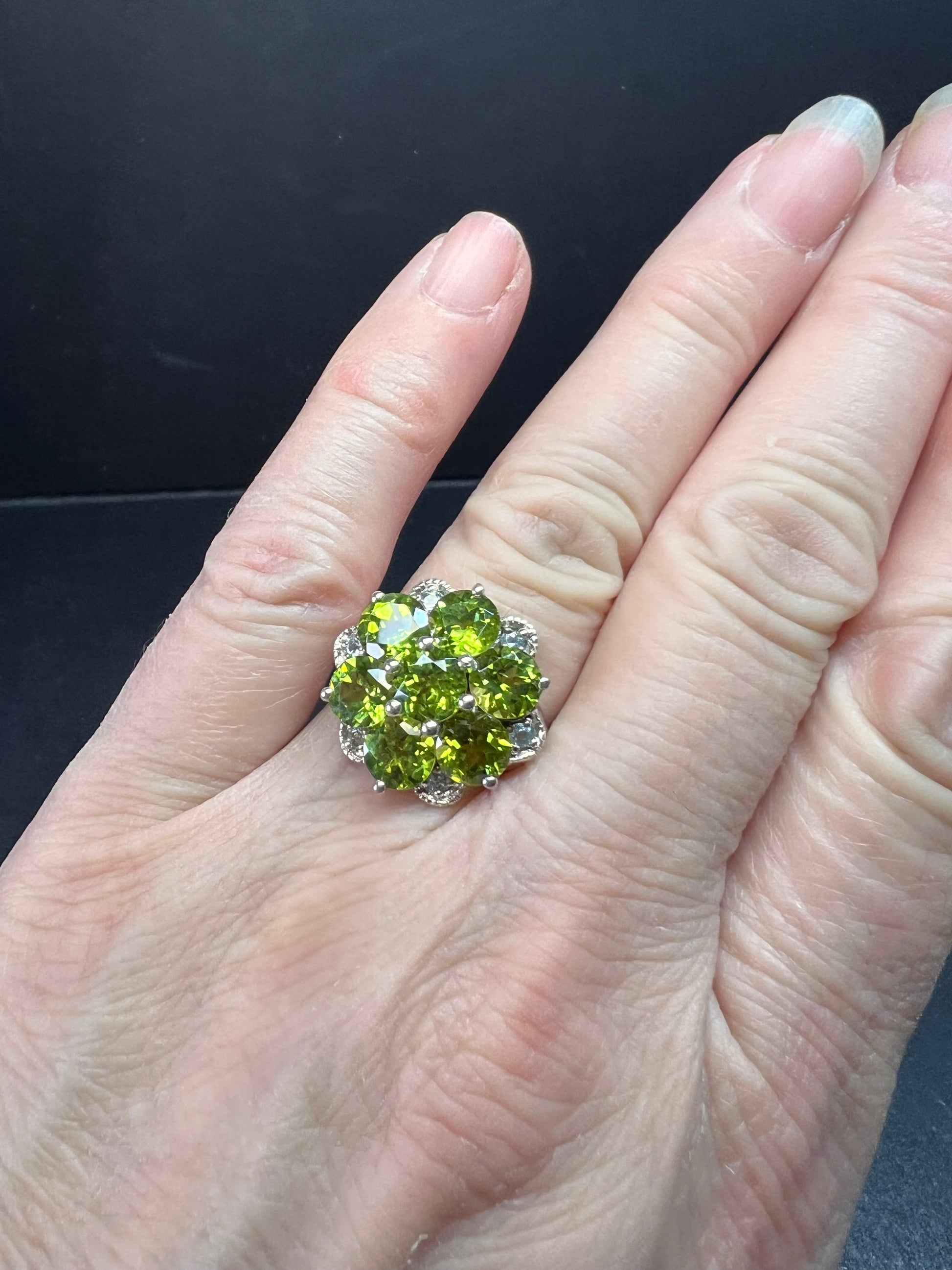 Vintage peridot and aquamarine sterling silver cluster ring size 7