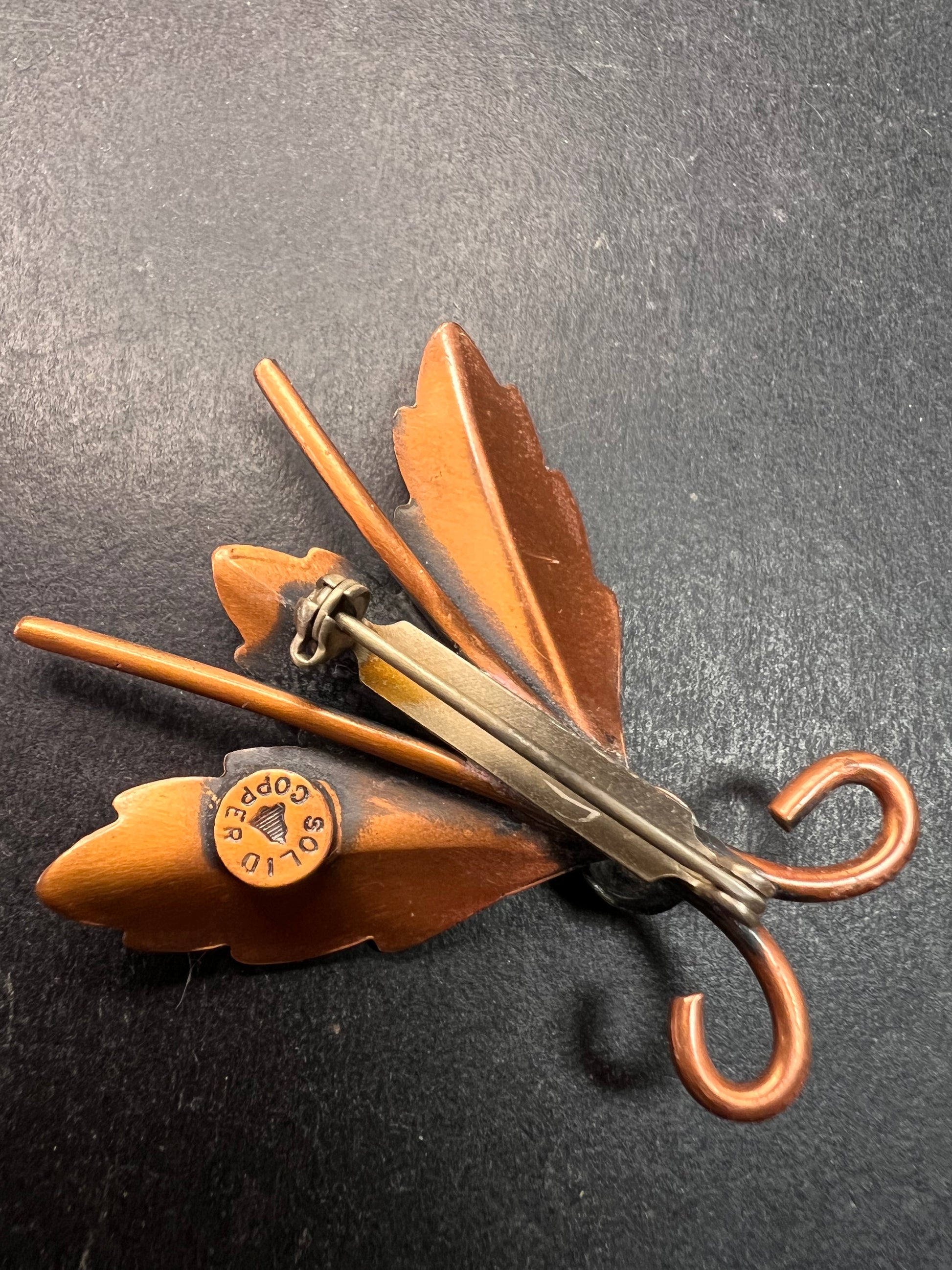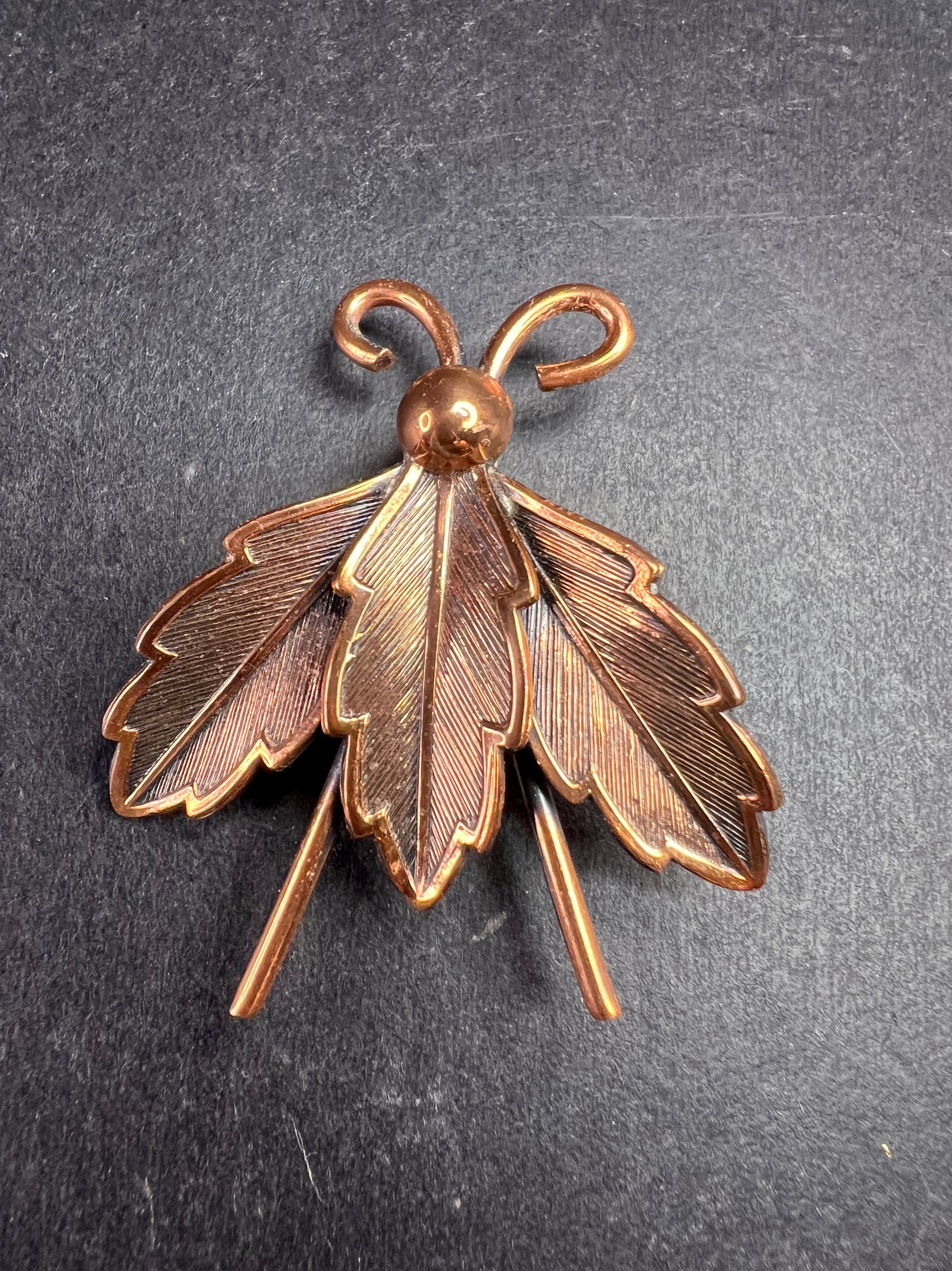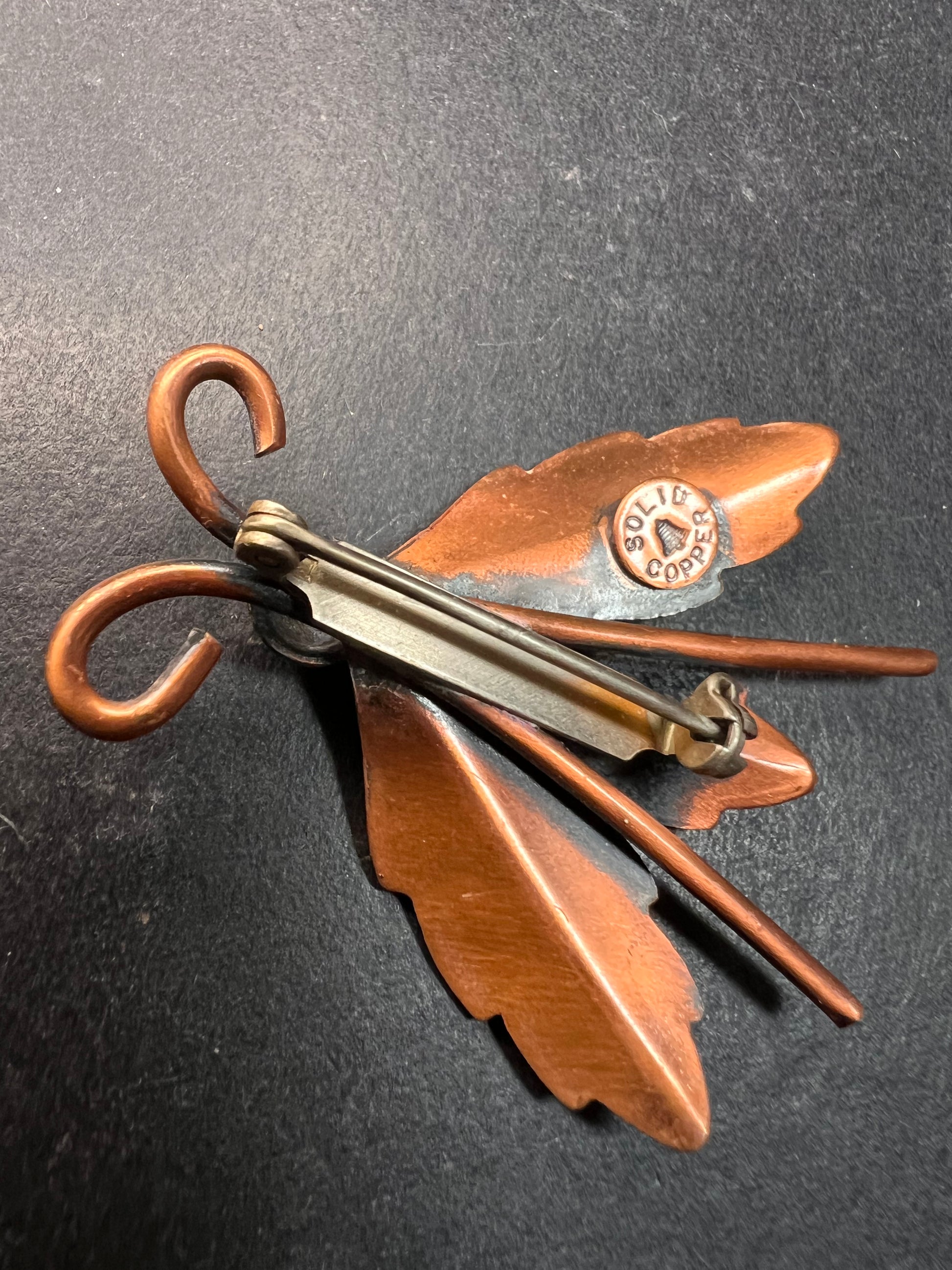Vintage Bell Trading Post Copper Insect Pin Leaf Wings Southwestern
