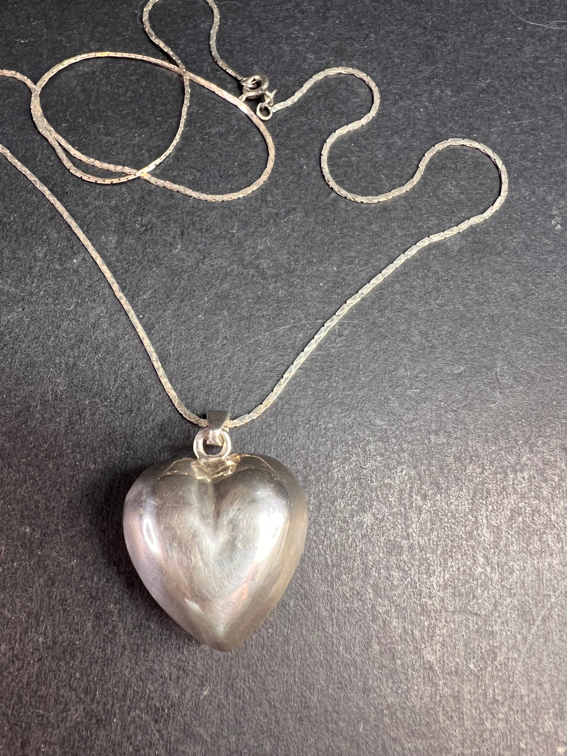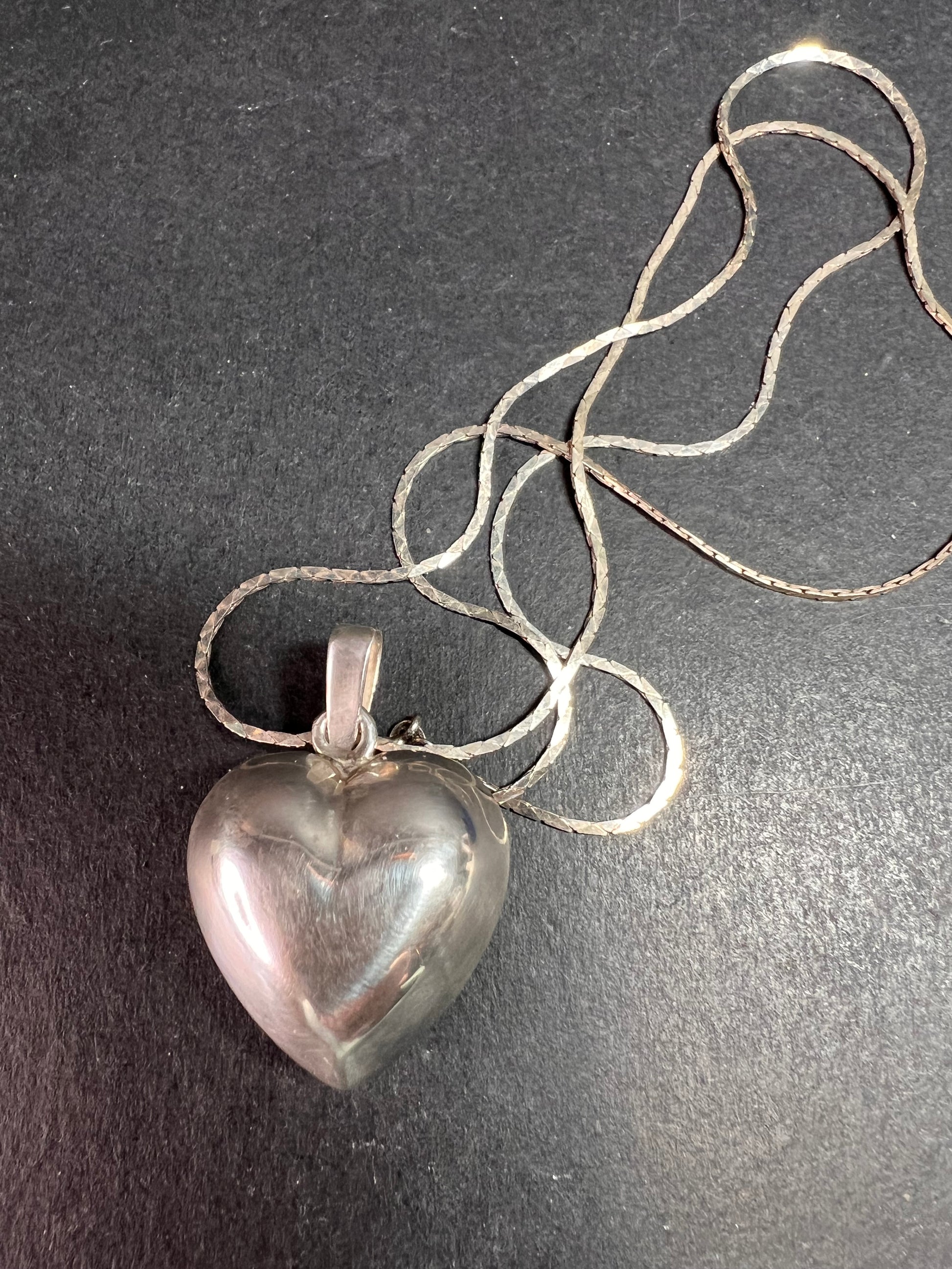 Vintage Sterling Puffy Heart Harmony Pendant on 20” Diamond-Cut Chain