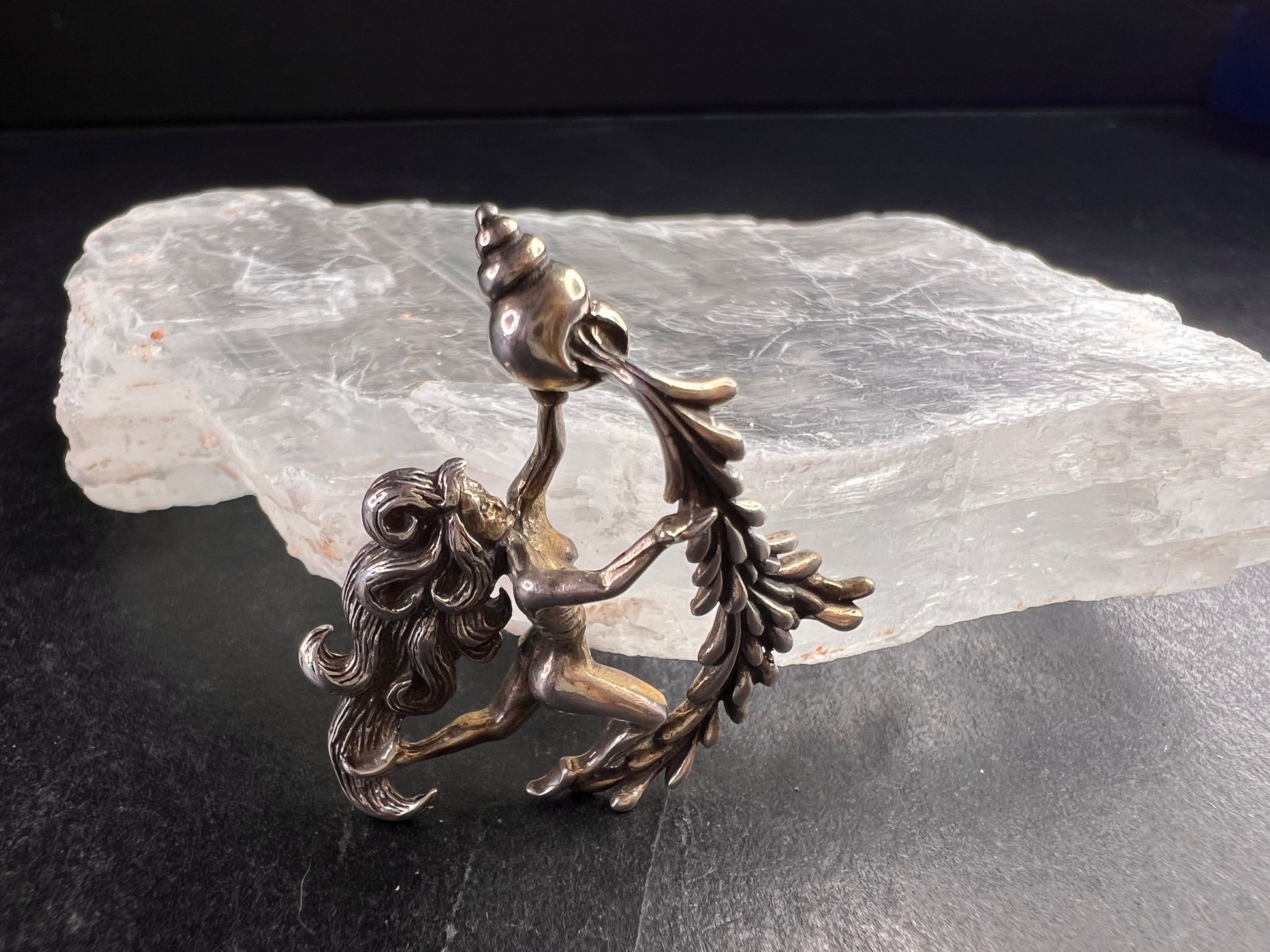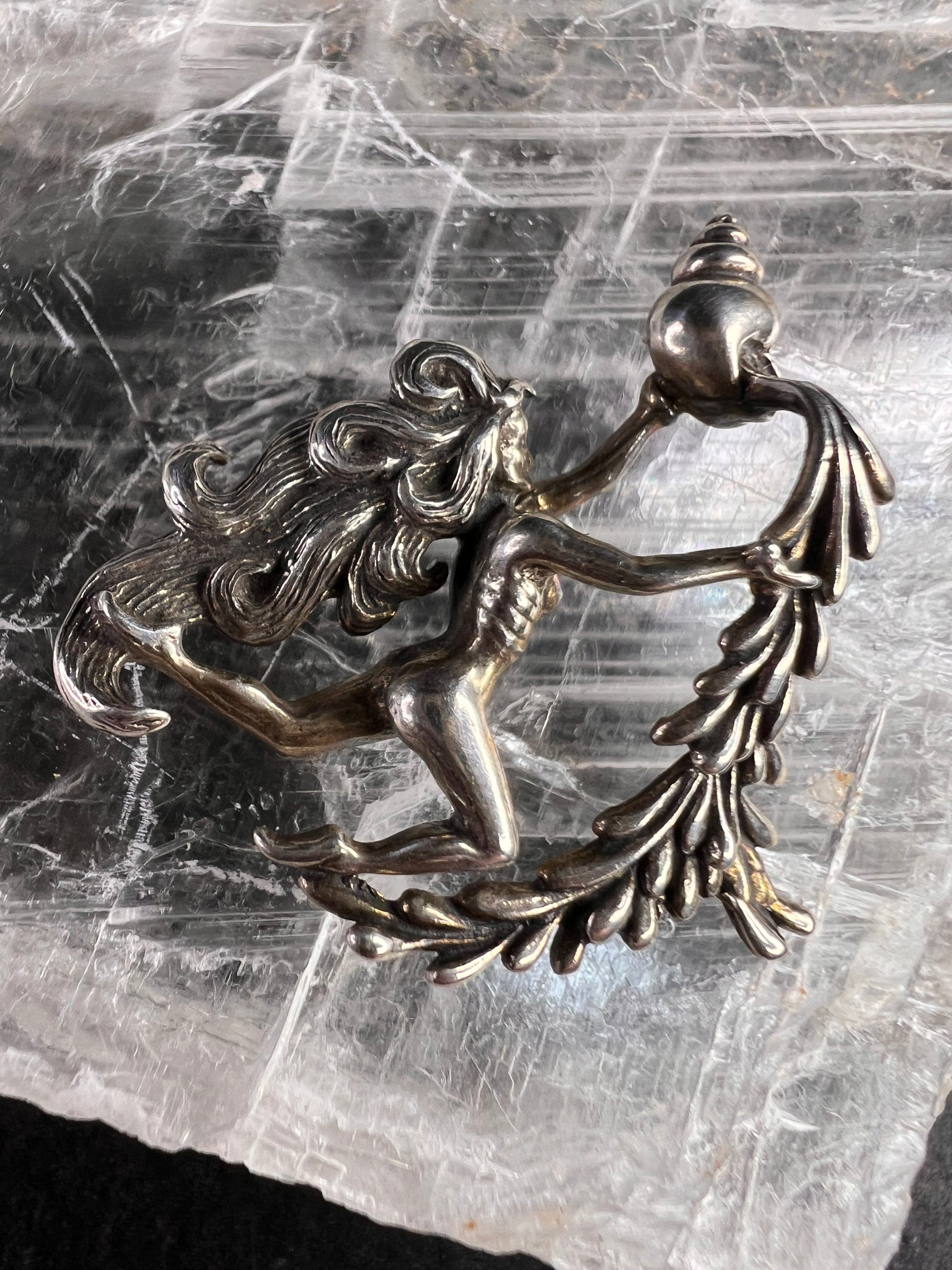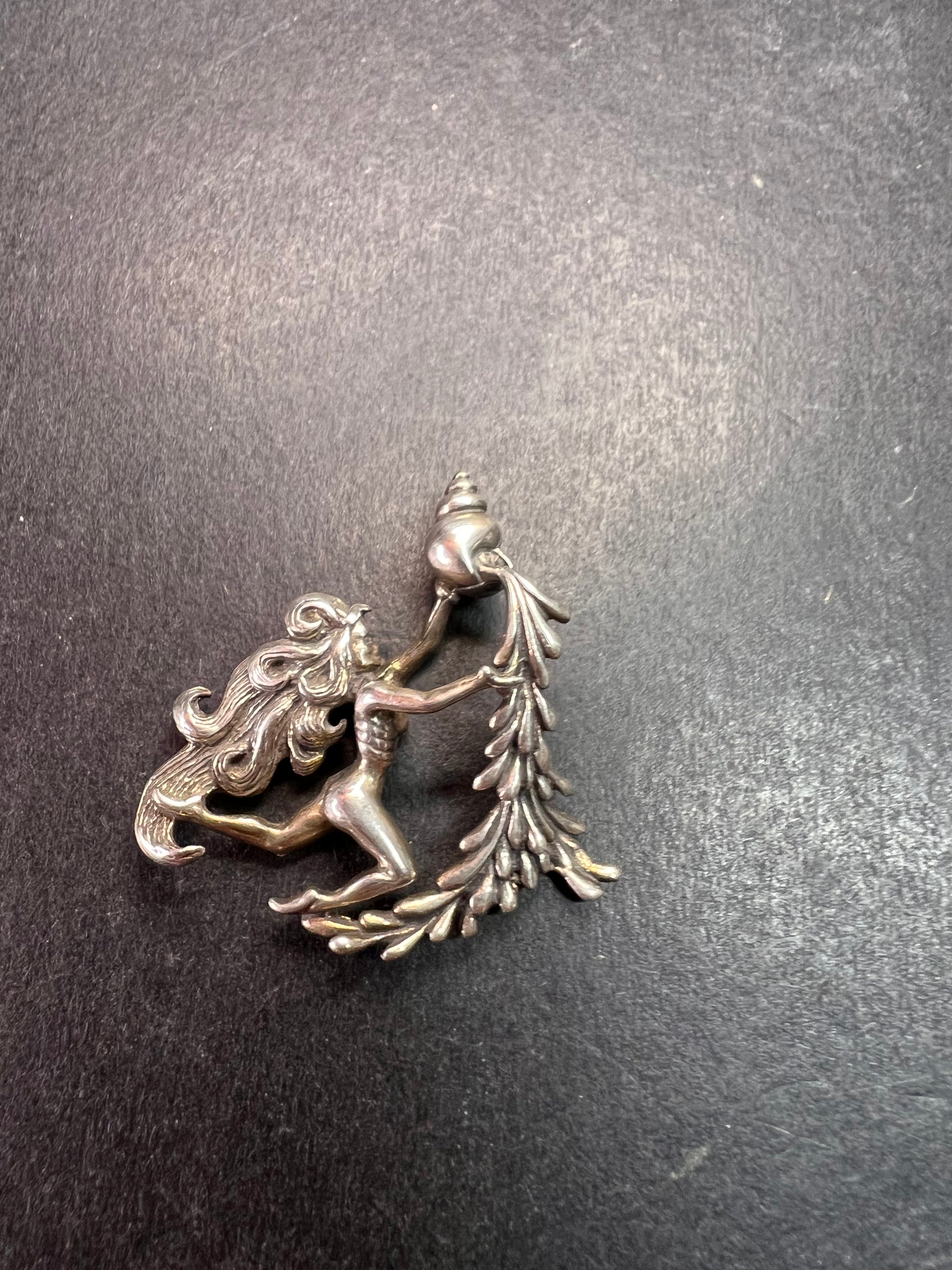 Pre-owned vintage Aquarius zodiac pendant crafted in genuine sterling silver, stamped “925” with a dated “79” on the back confirming 1979 production. This sculptural water bearer design features a dynamic female figure with flowing hair pouring from a vessel framed by detailed leaf-like elements. Late 1970s era design with strong astrological and figural styling. Weight is 3.38 grams as shown on the scale. Measures approximately 1.75 inches wide (see ruler photos). Pendant only; chain not included. Excellent vintage condition with natural patina consistent with age and no damage observed. A striking original zodiac statement piece for collectors and January–February birthdays.