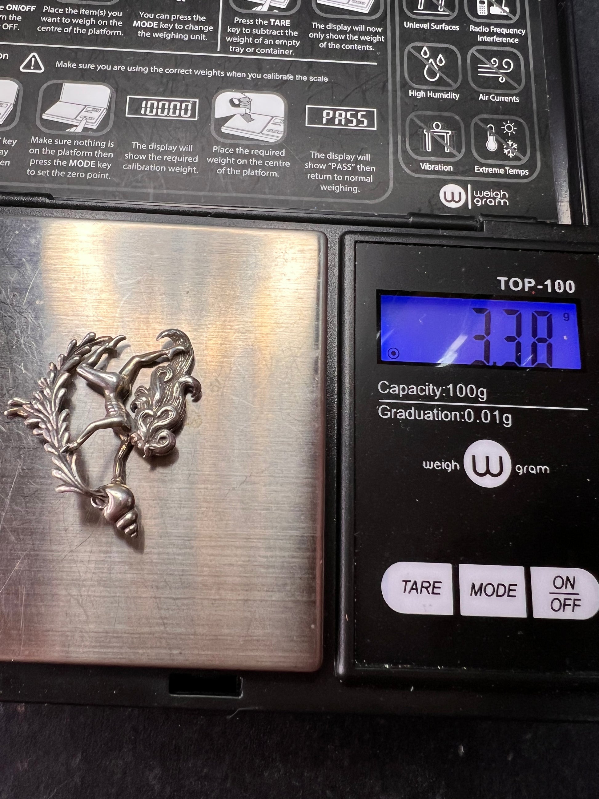 Vintage Sterling Silver Aquarius Water Bearer Zodiac Pendant 3.38g