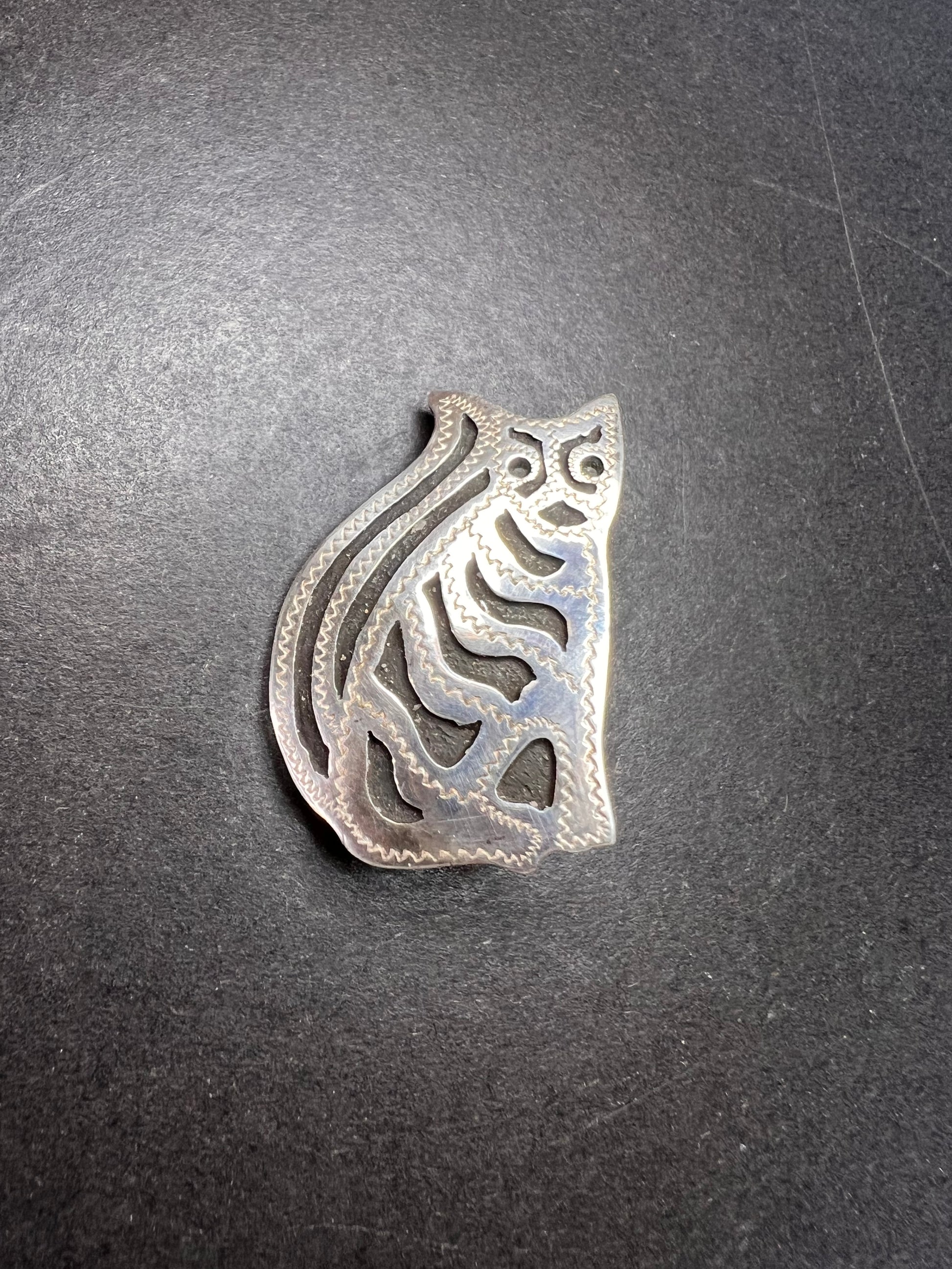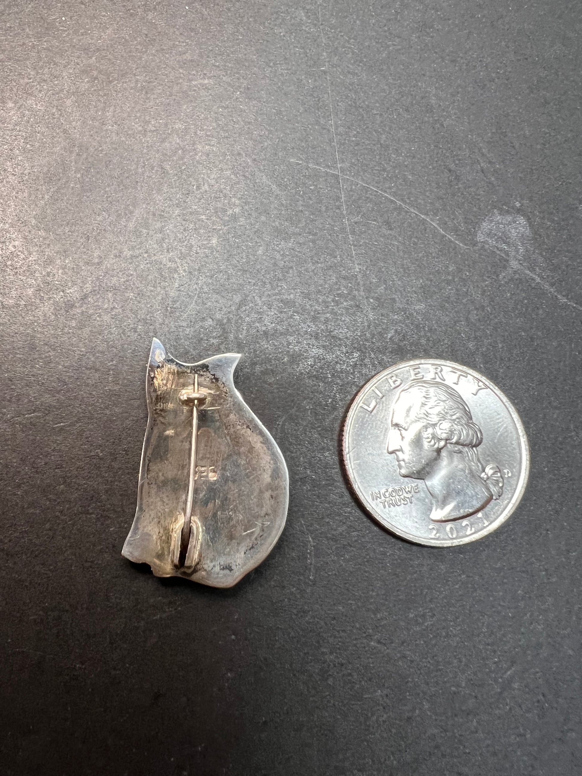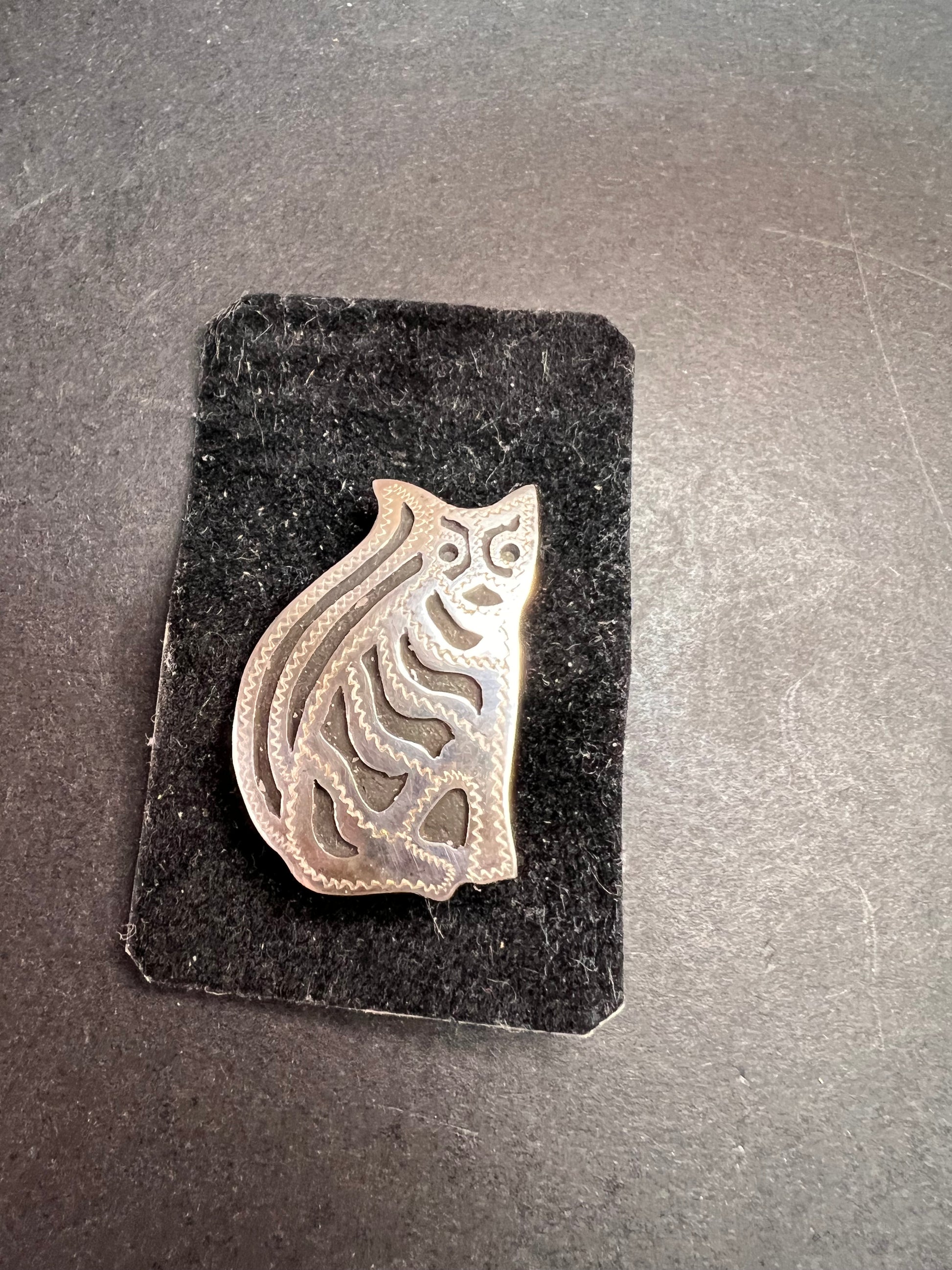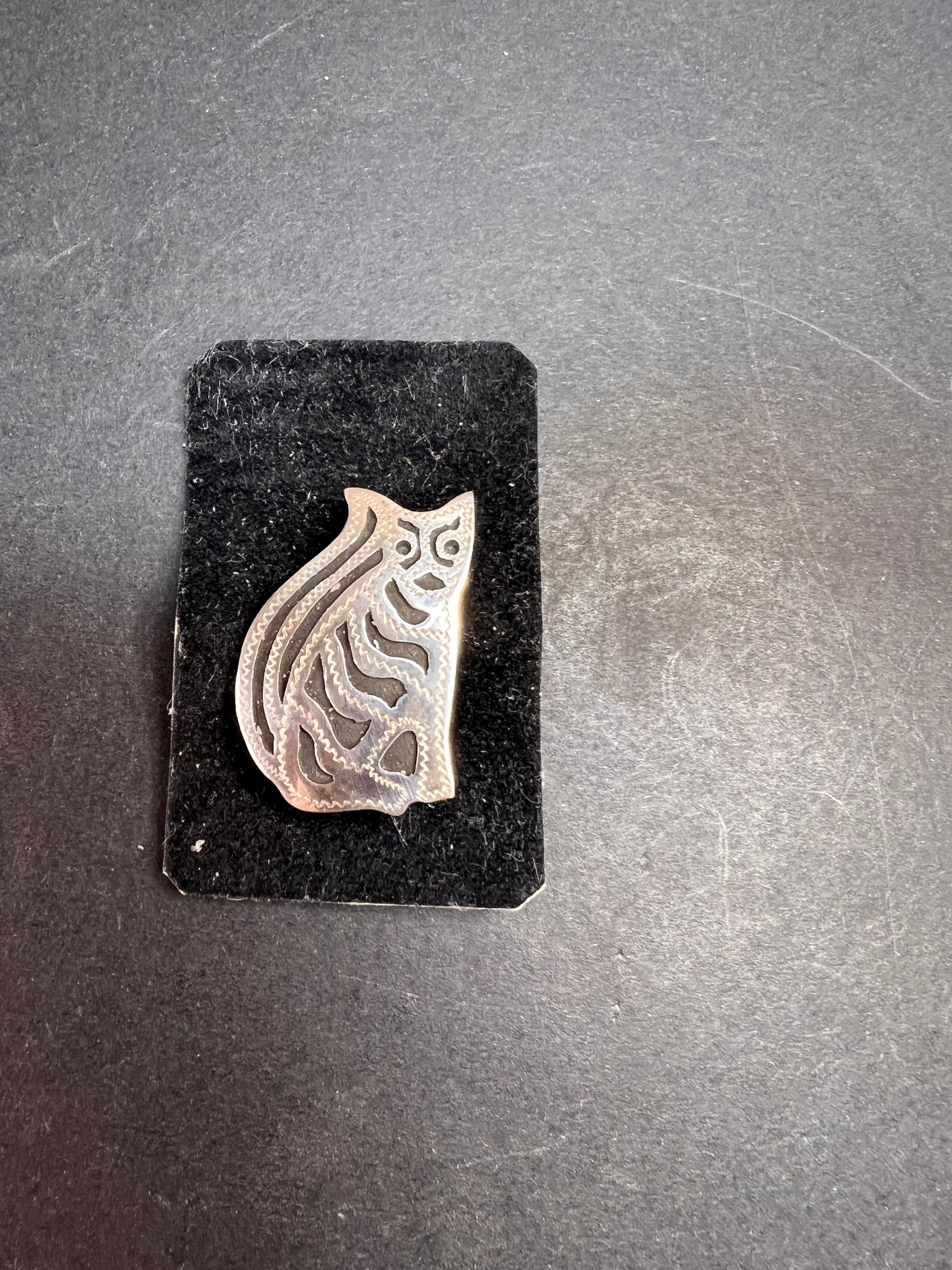 Authentic 925 Indonesian sterling silver cat brooch pin. Back of card says it’s from Tom’s silver manufacture in Indonesia. Total weight without card is 4.28 grams.