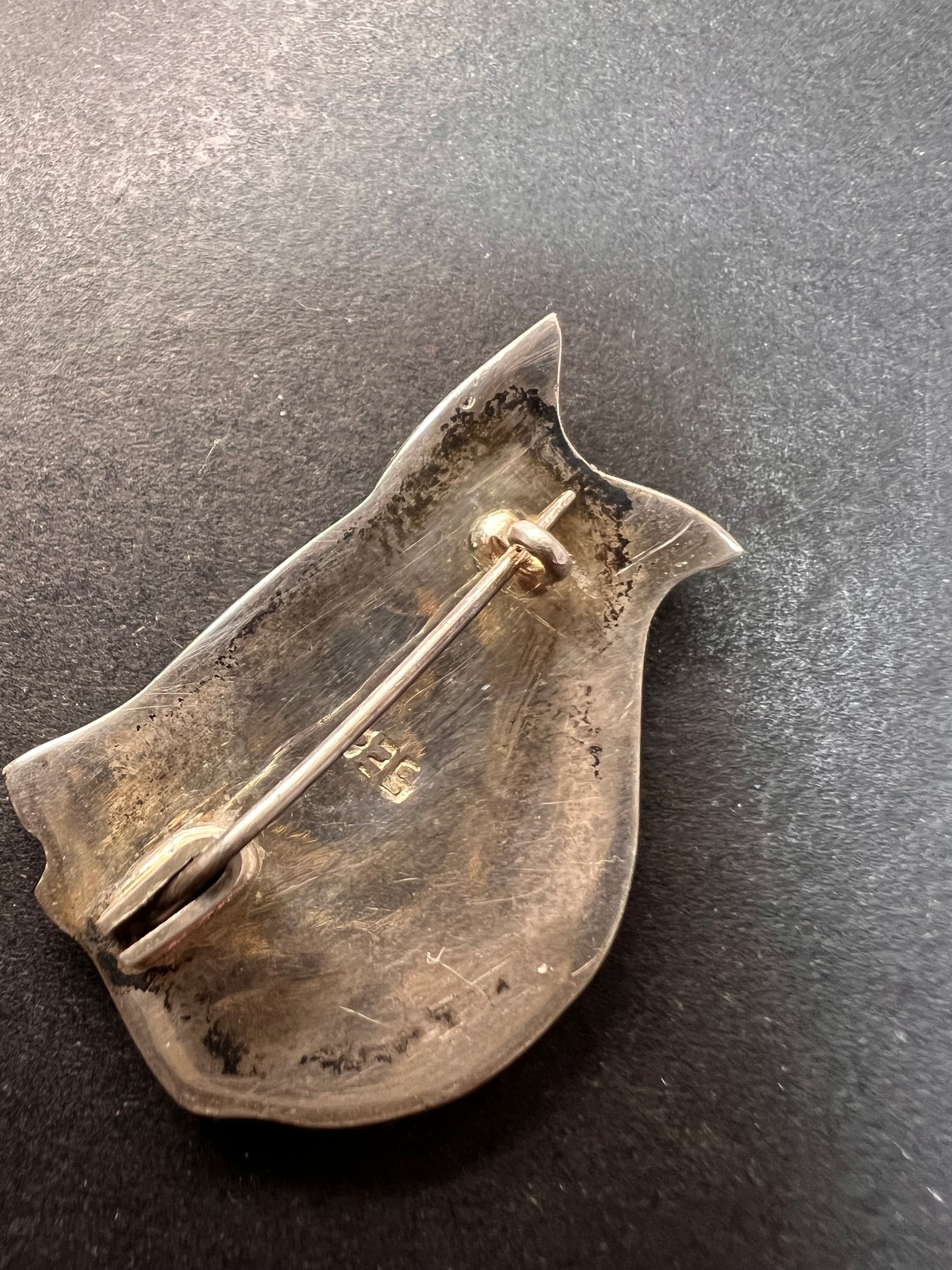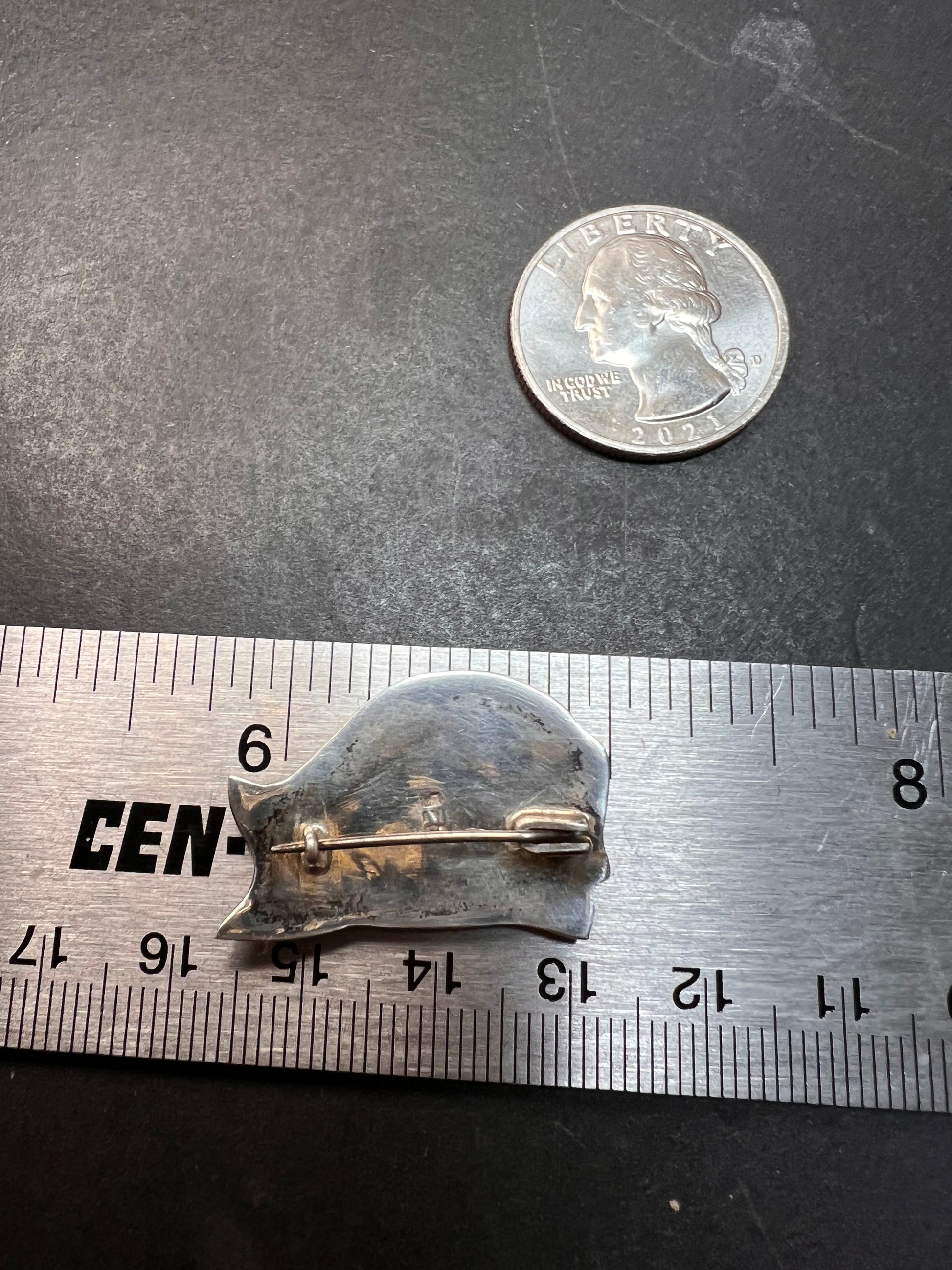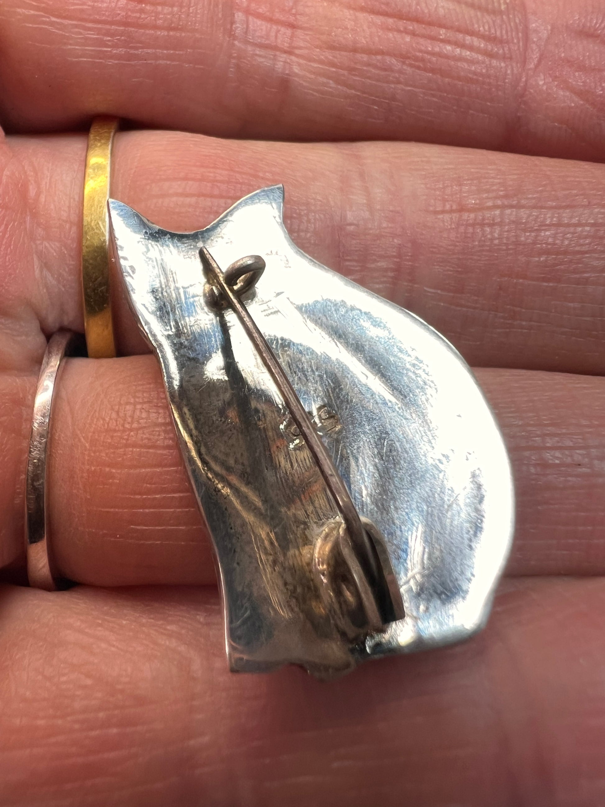 Authentic 925 Indonesian sterling silver cat brooch pin. Back of card says it’s from Tom’s silver manufacture in Indonesia. Total weight without card is 4.28 grams.