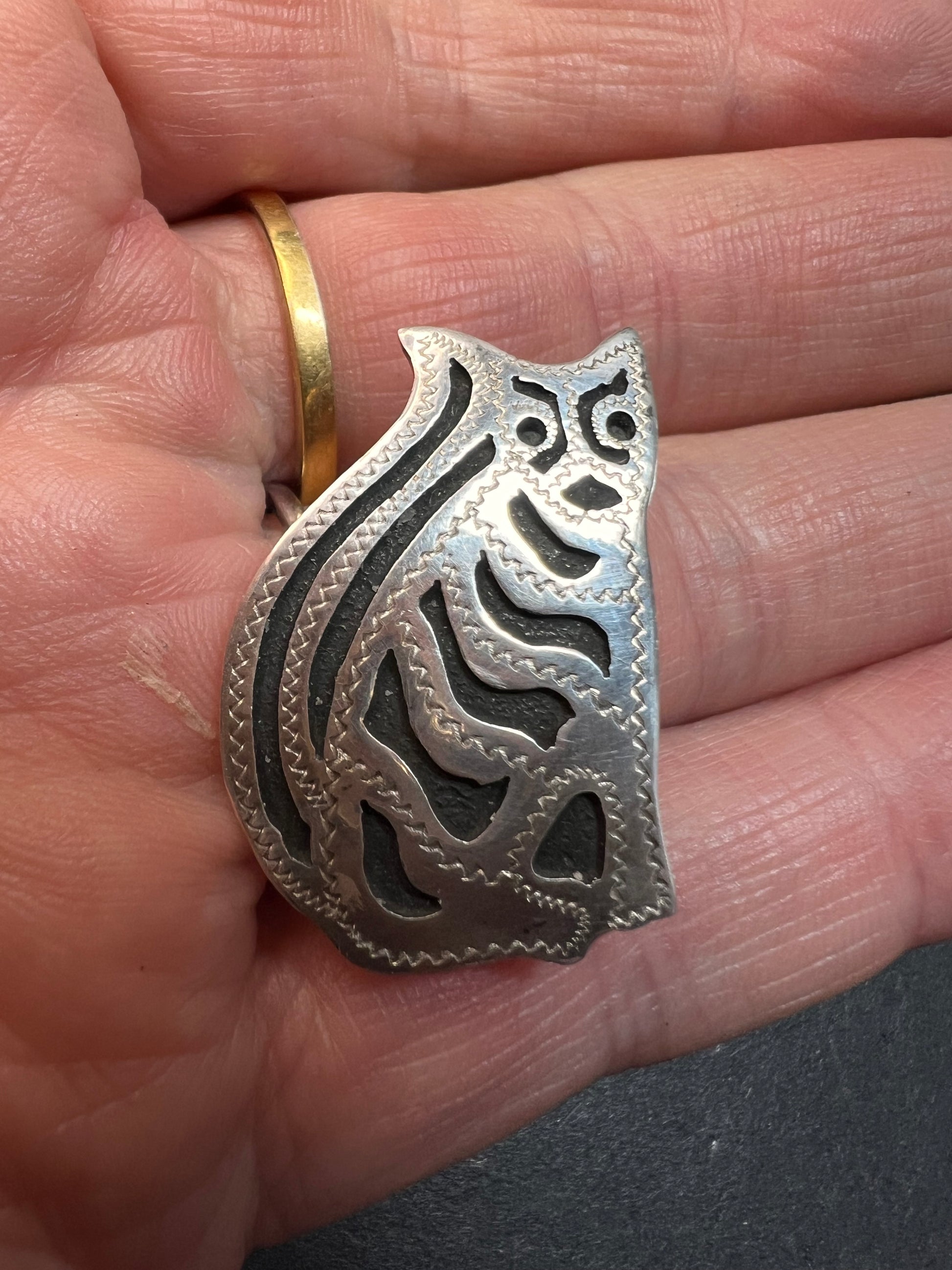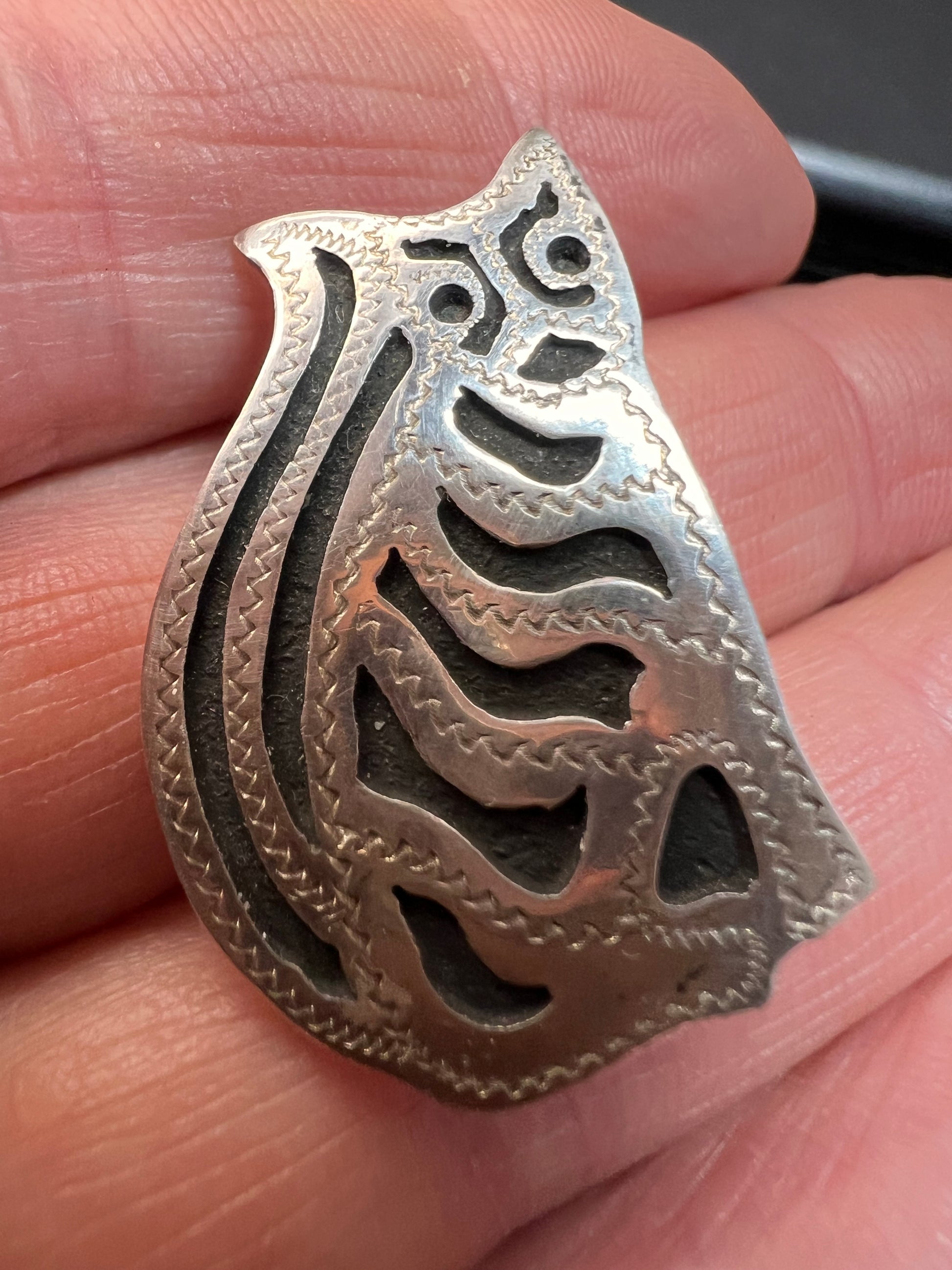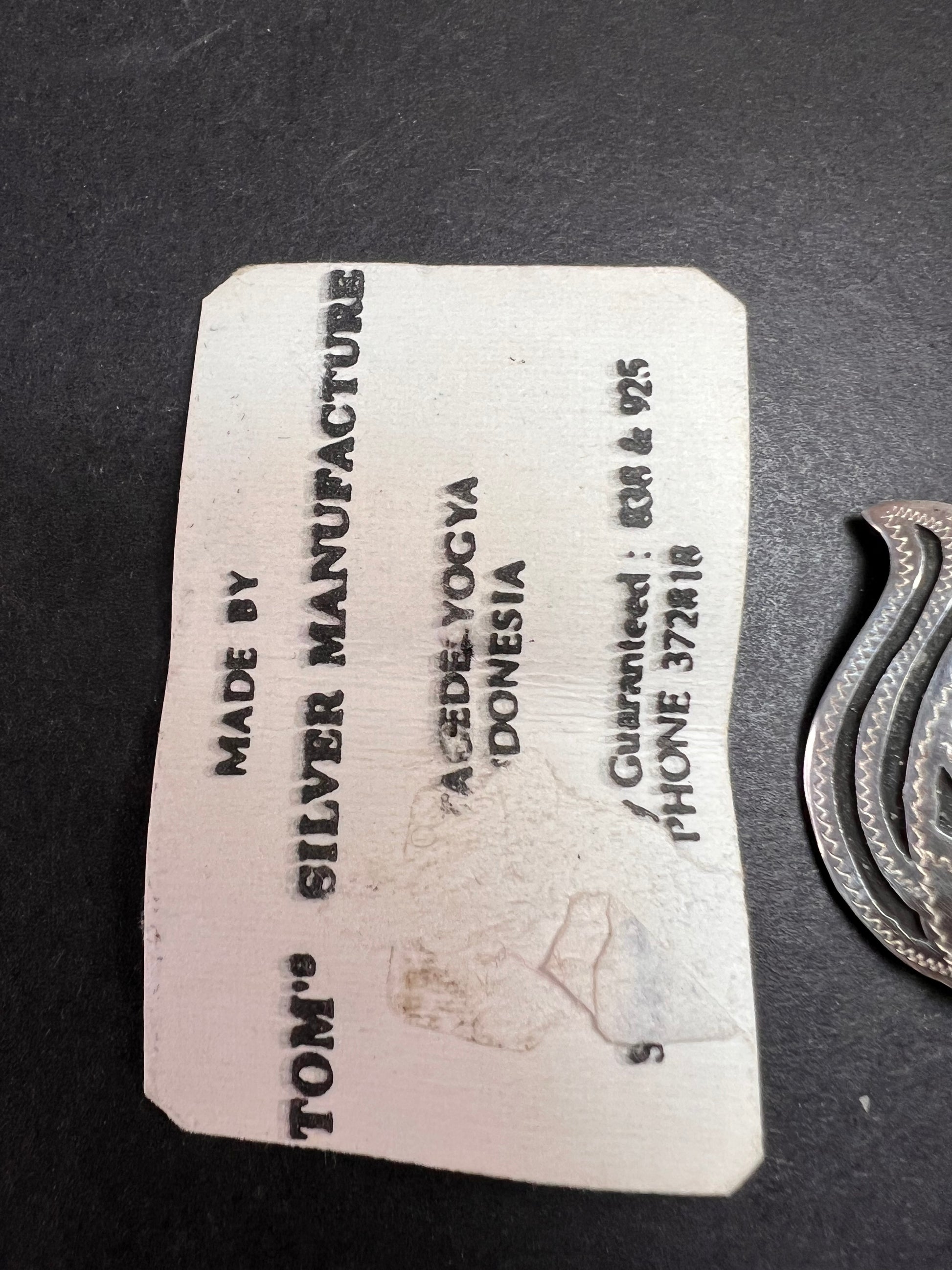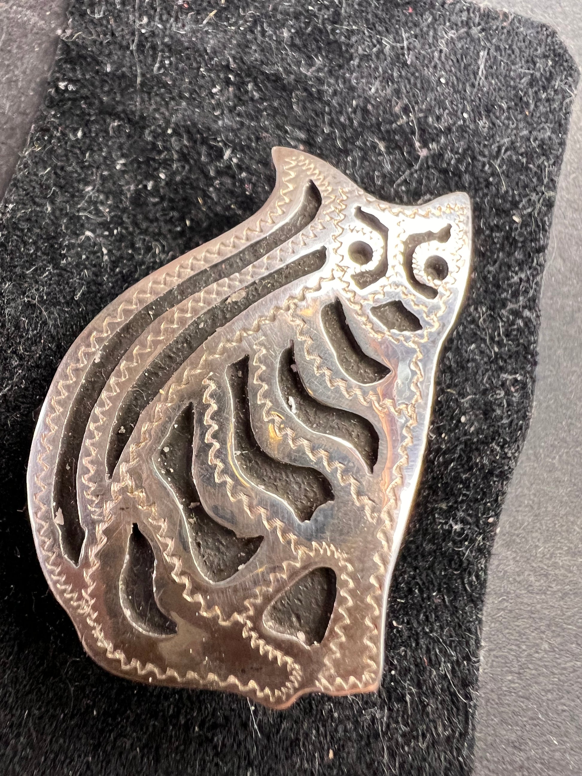 Authentic 925 Indonesian sterling silver cat brooch pin. Back of card says it’s from Tom’s silver manufacture in Indonesia. Total weight without card is 4.28 grams.