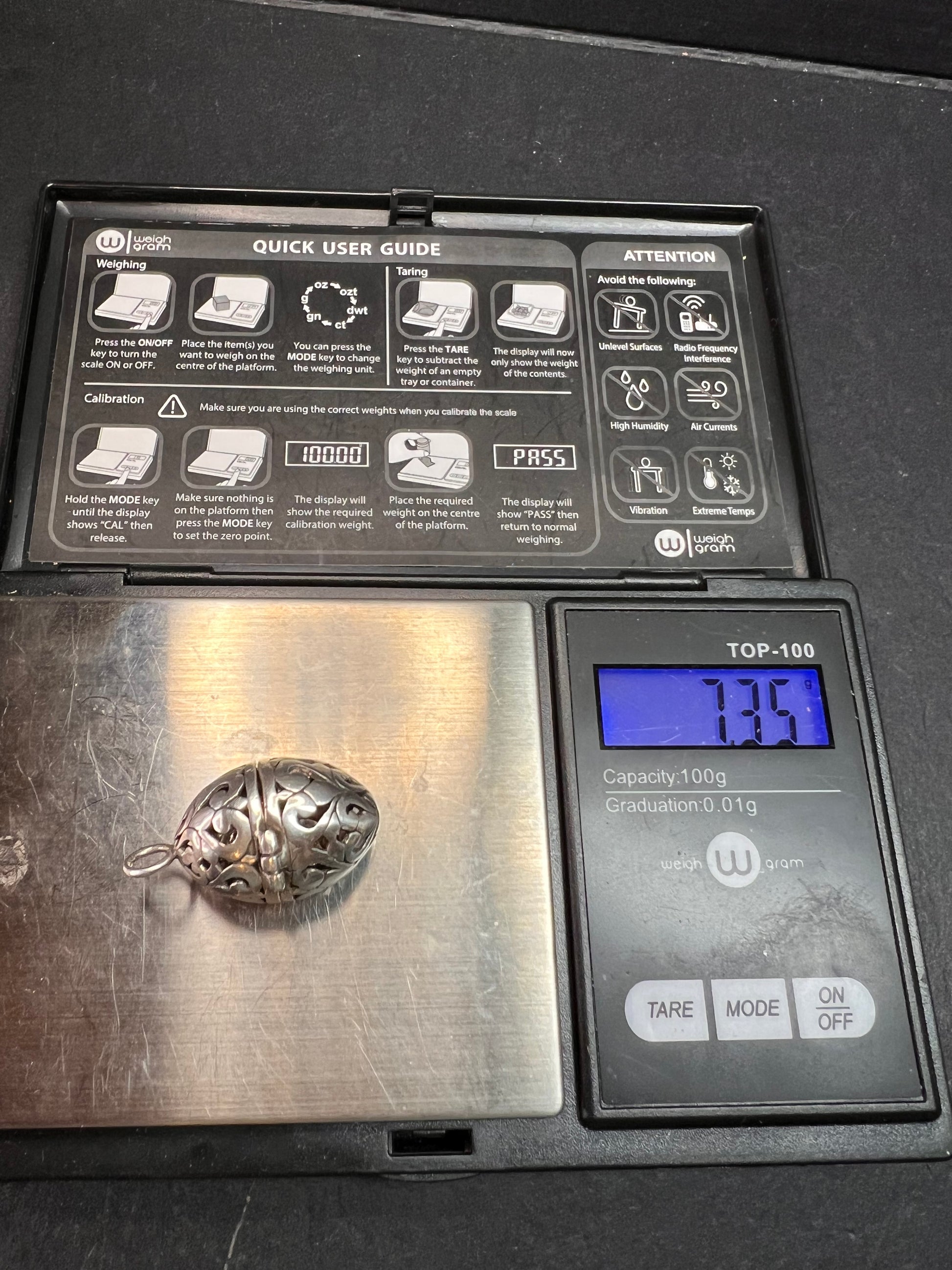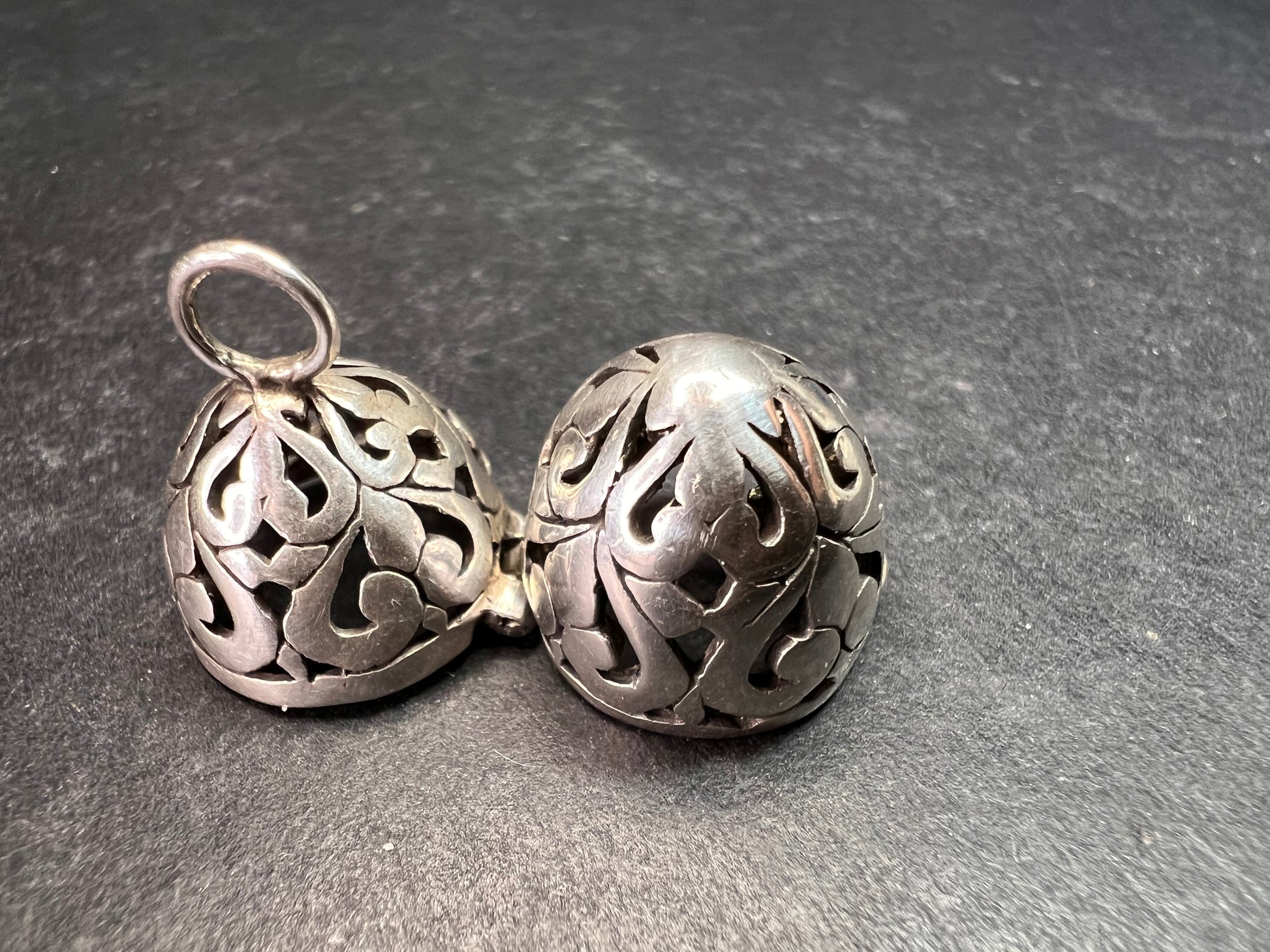 Vintage Sterling Silver Filigree Egg Locket Charm