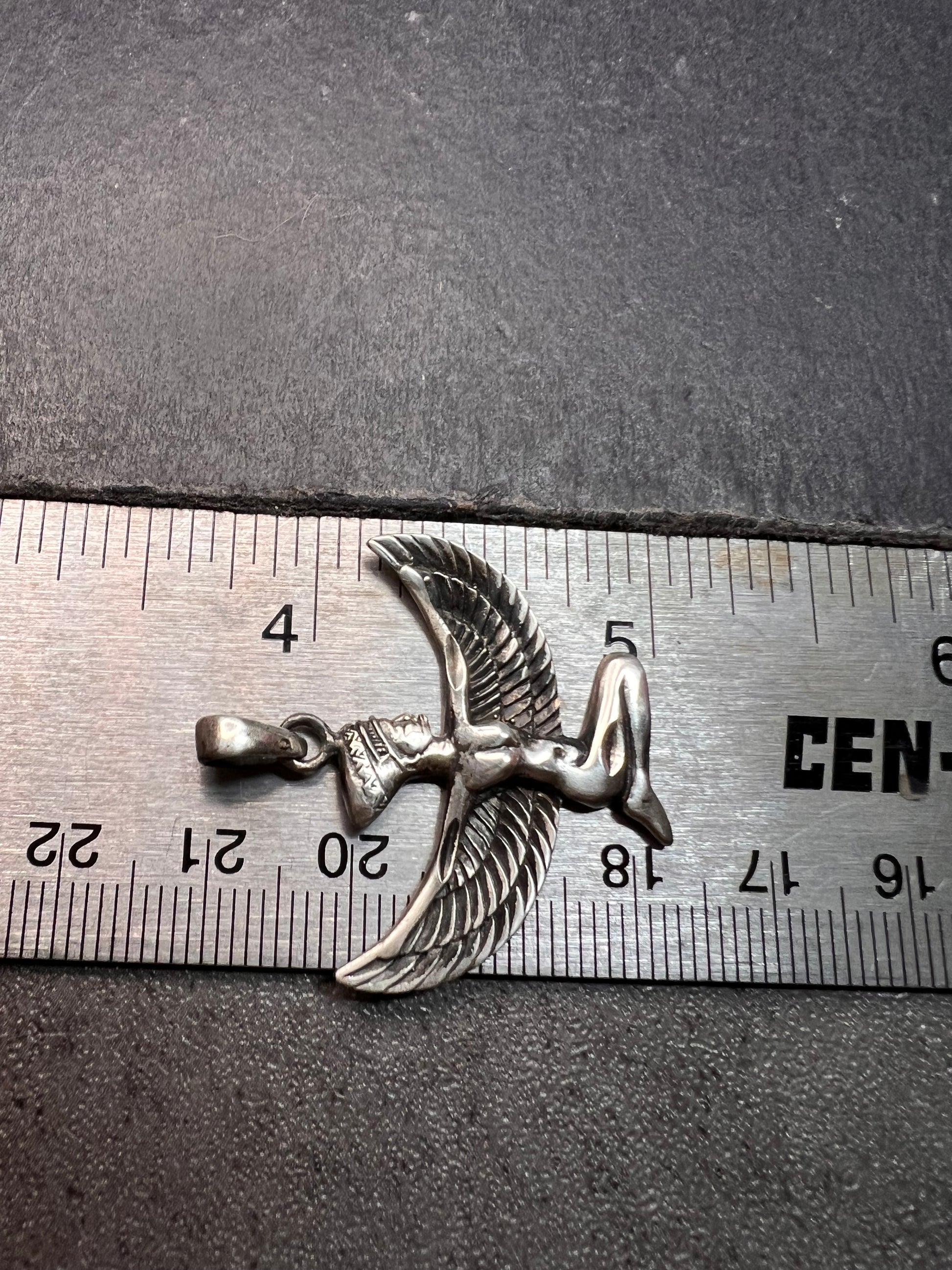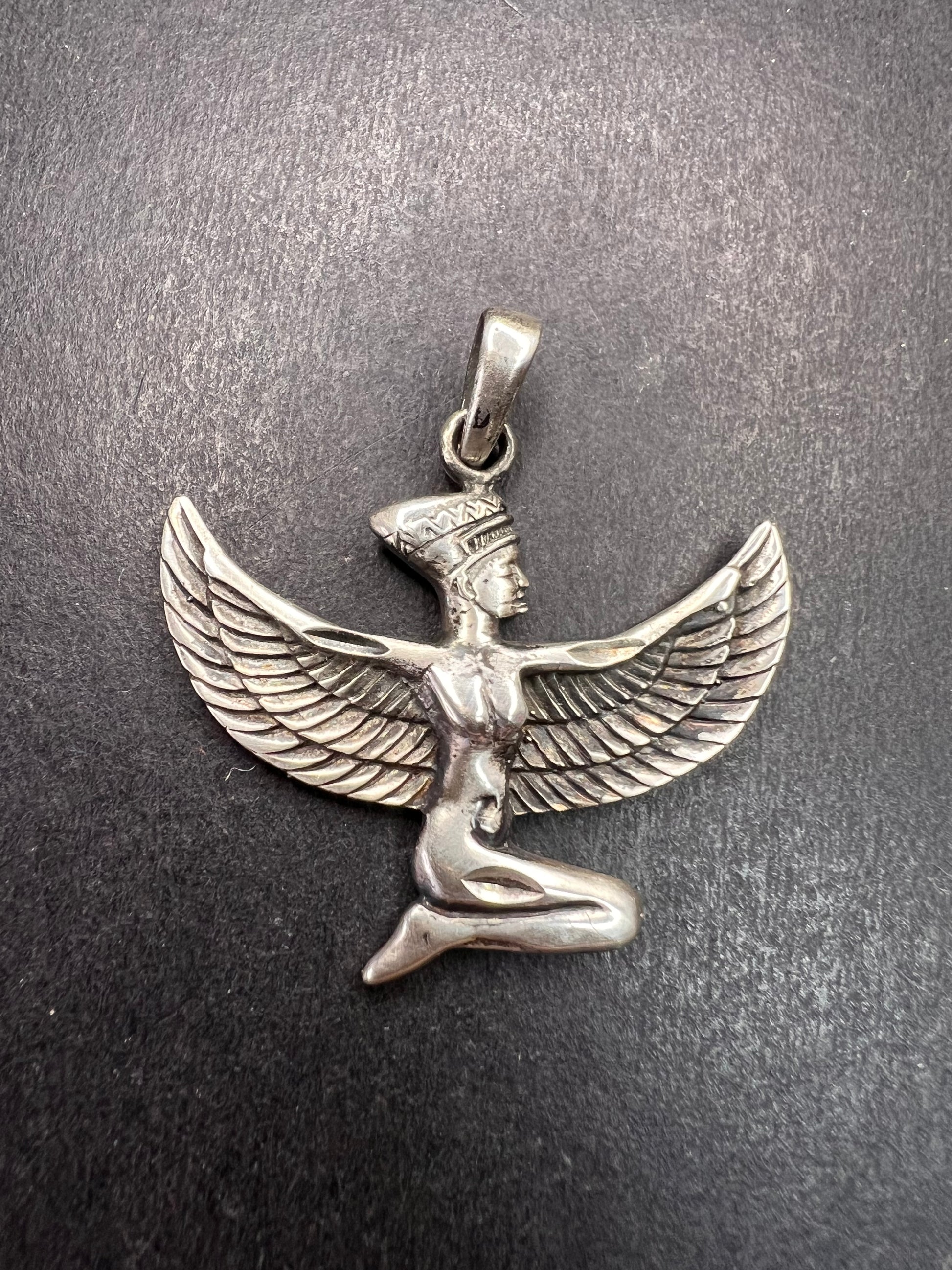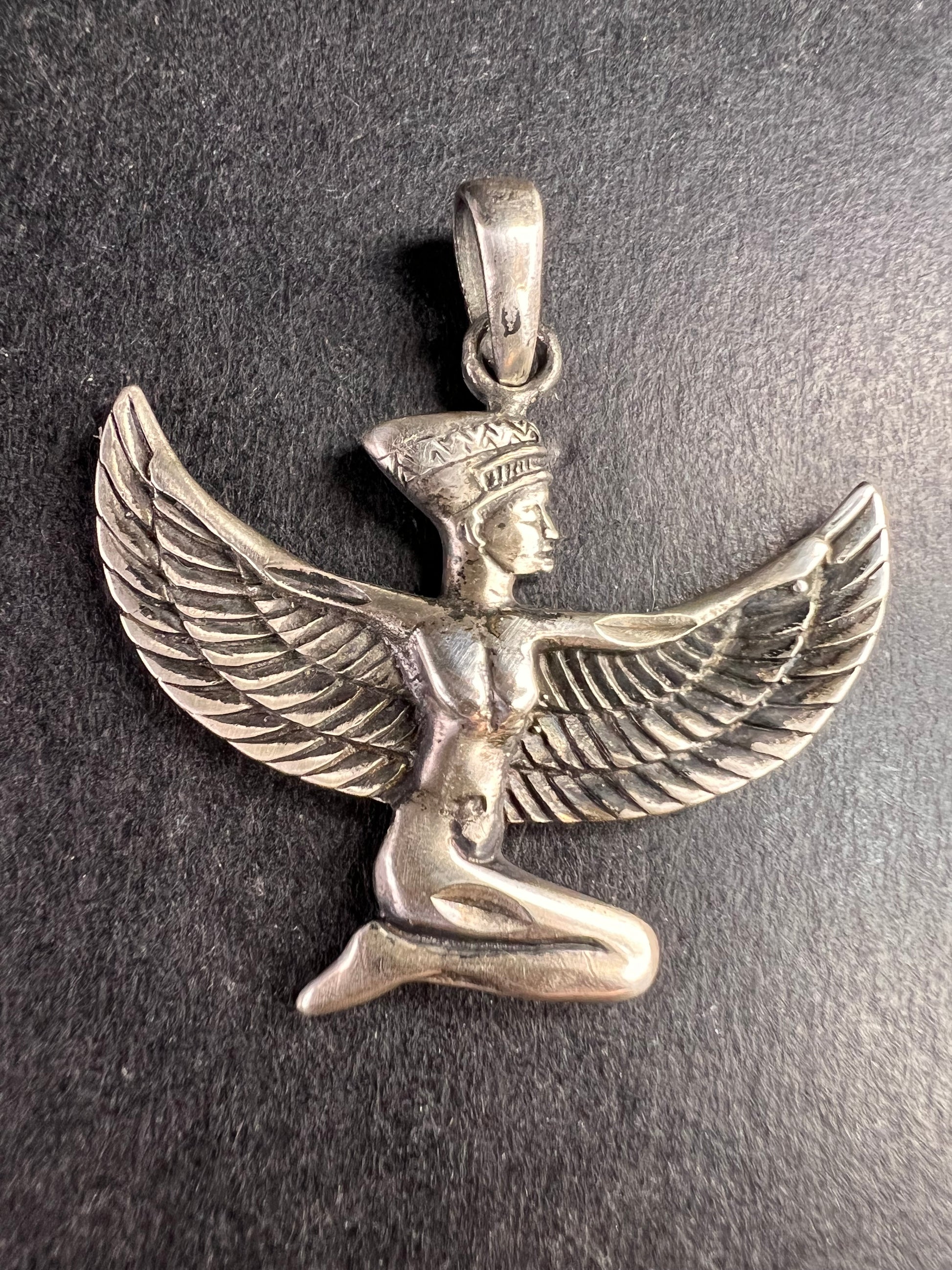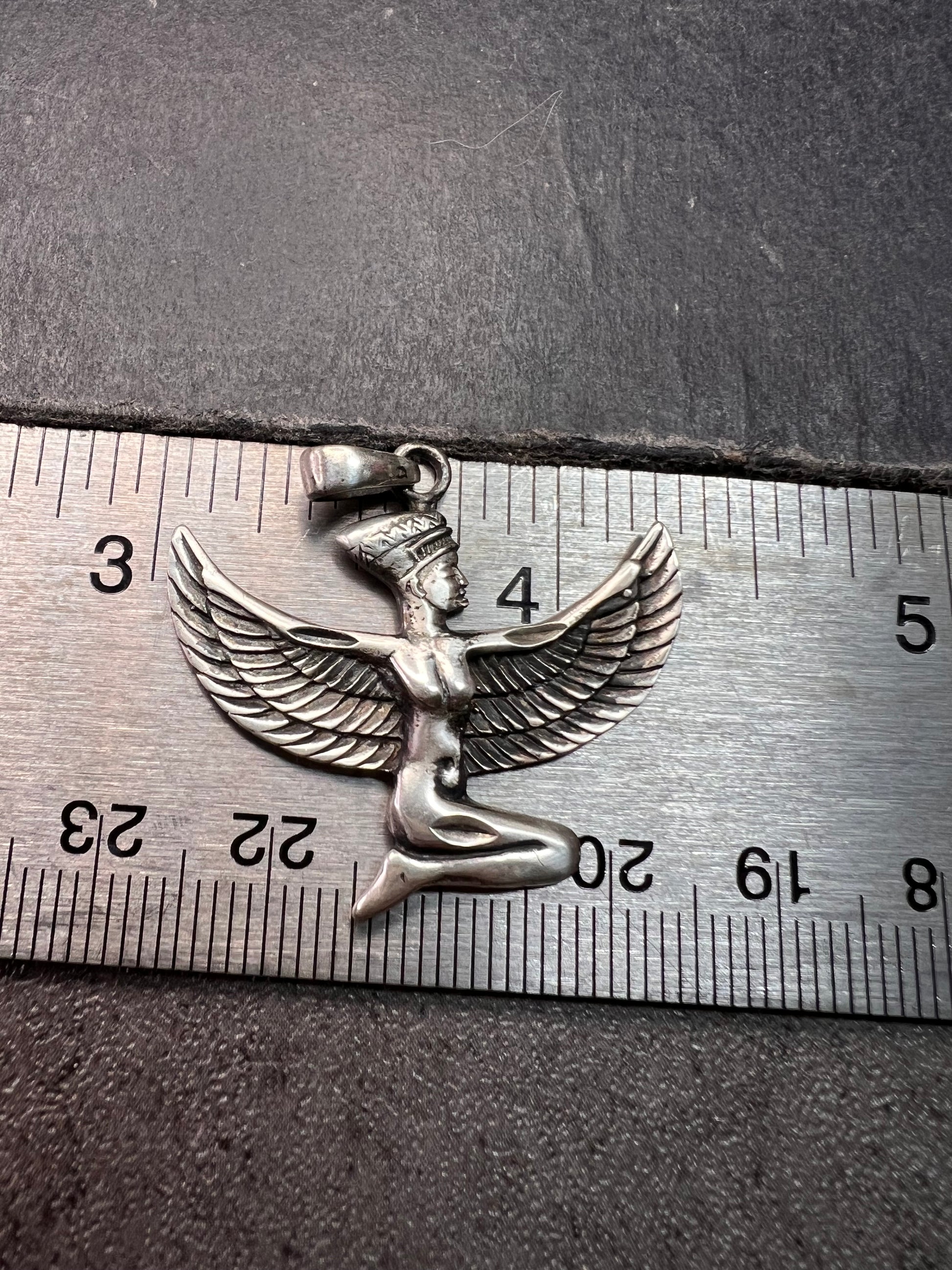 Vintage Sterling Silver Isis Goddess Pendant – Winged Egyptian Protection Amulet