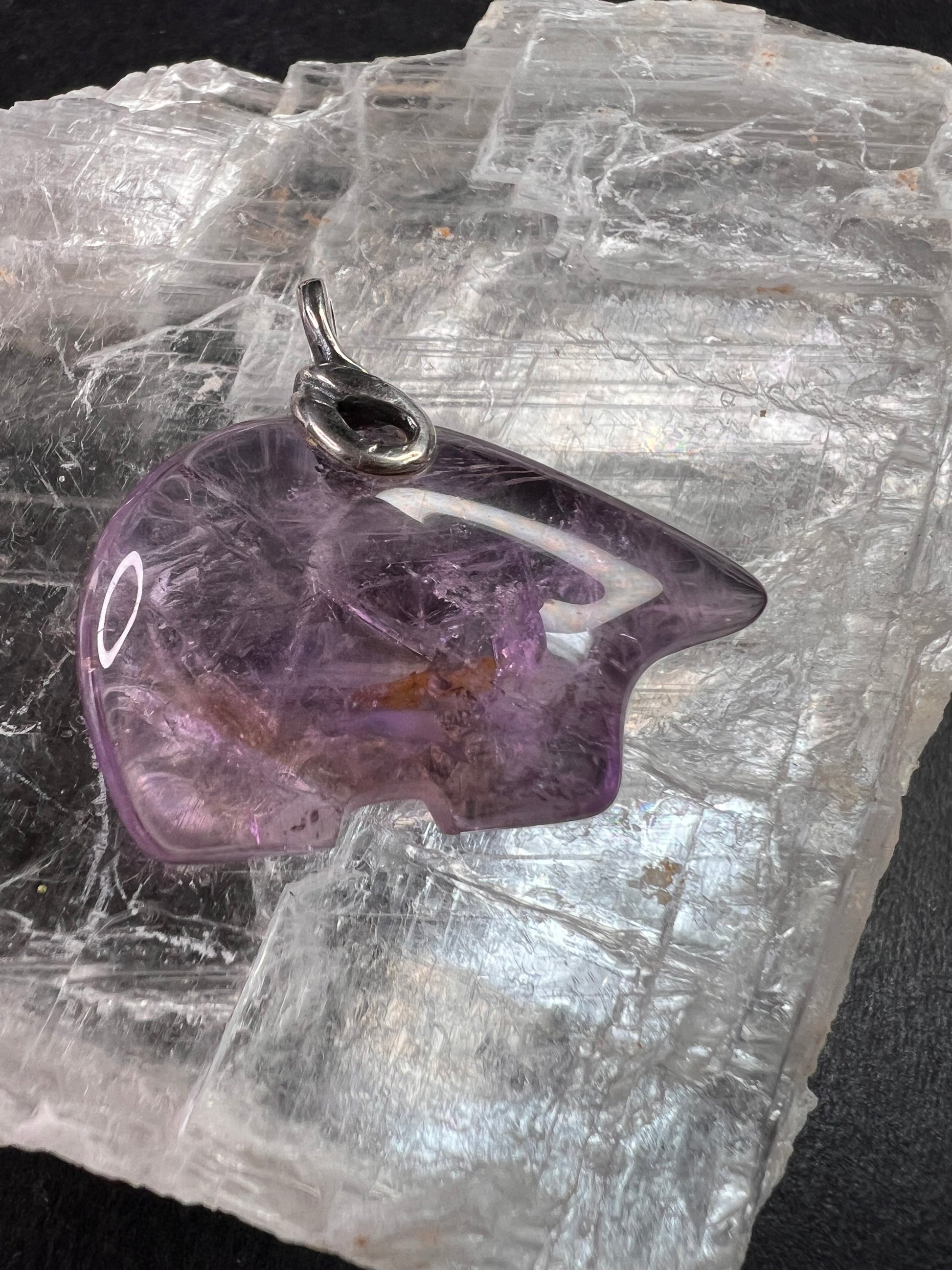 Vintage Sterling Silver Natural Amethyst Bear Pendant 7.16g