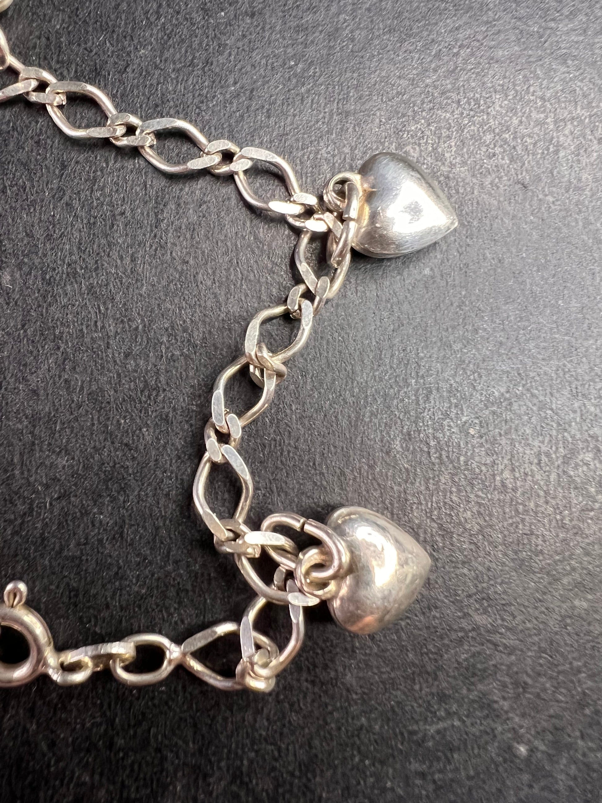 Vintage sterling silver puffy hearts lock and key charm bracelet 7.5 inch