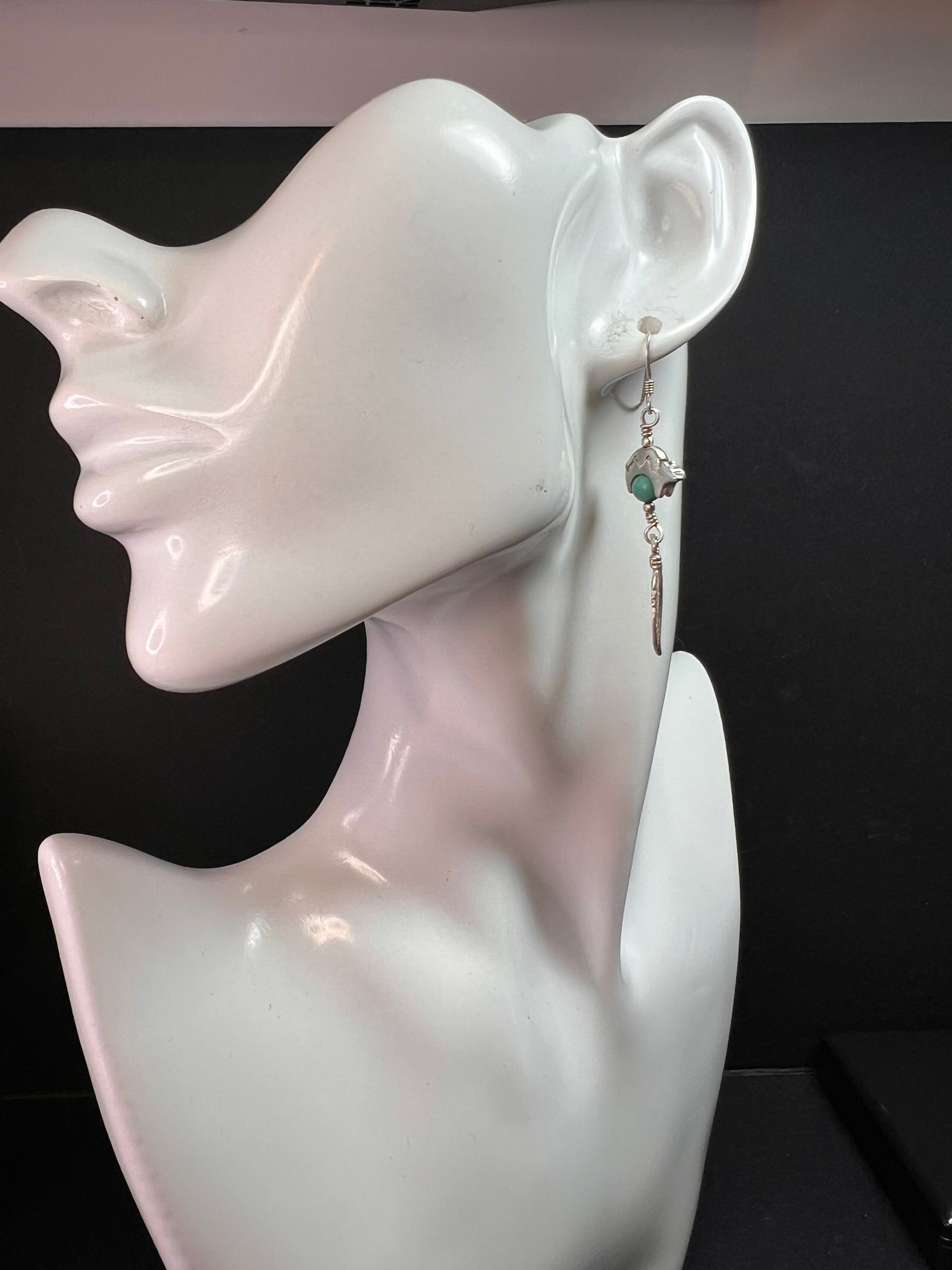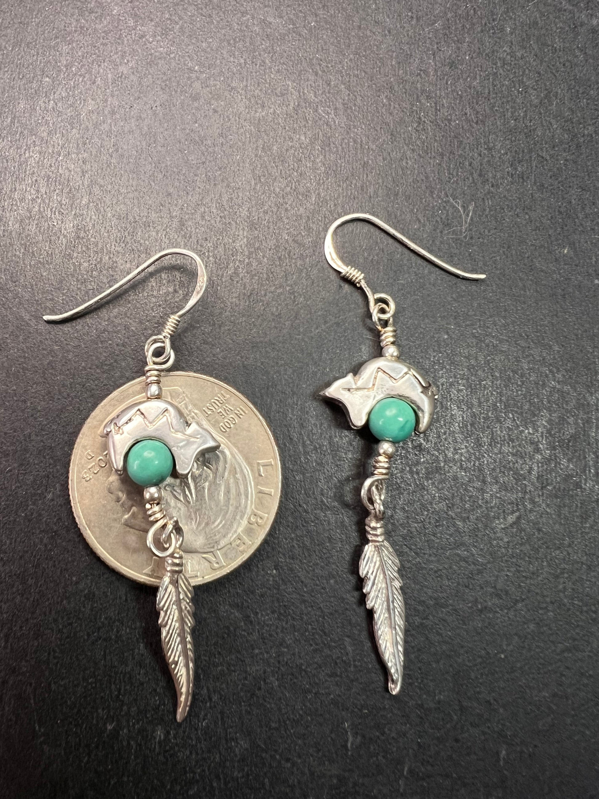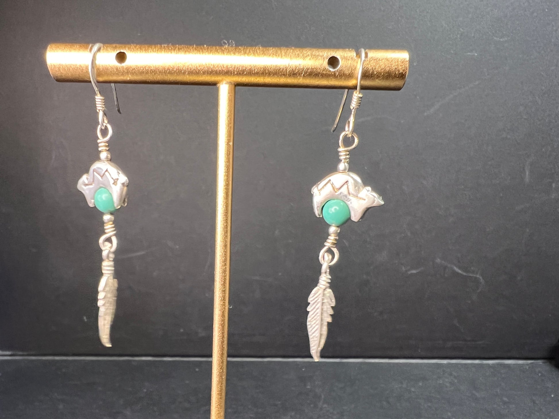 Vintage Sterling Silver Turquoise Earrings – Bear & Feather Motif