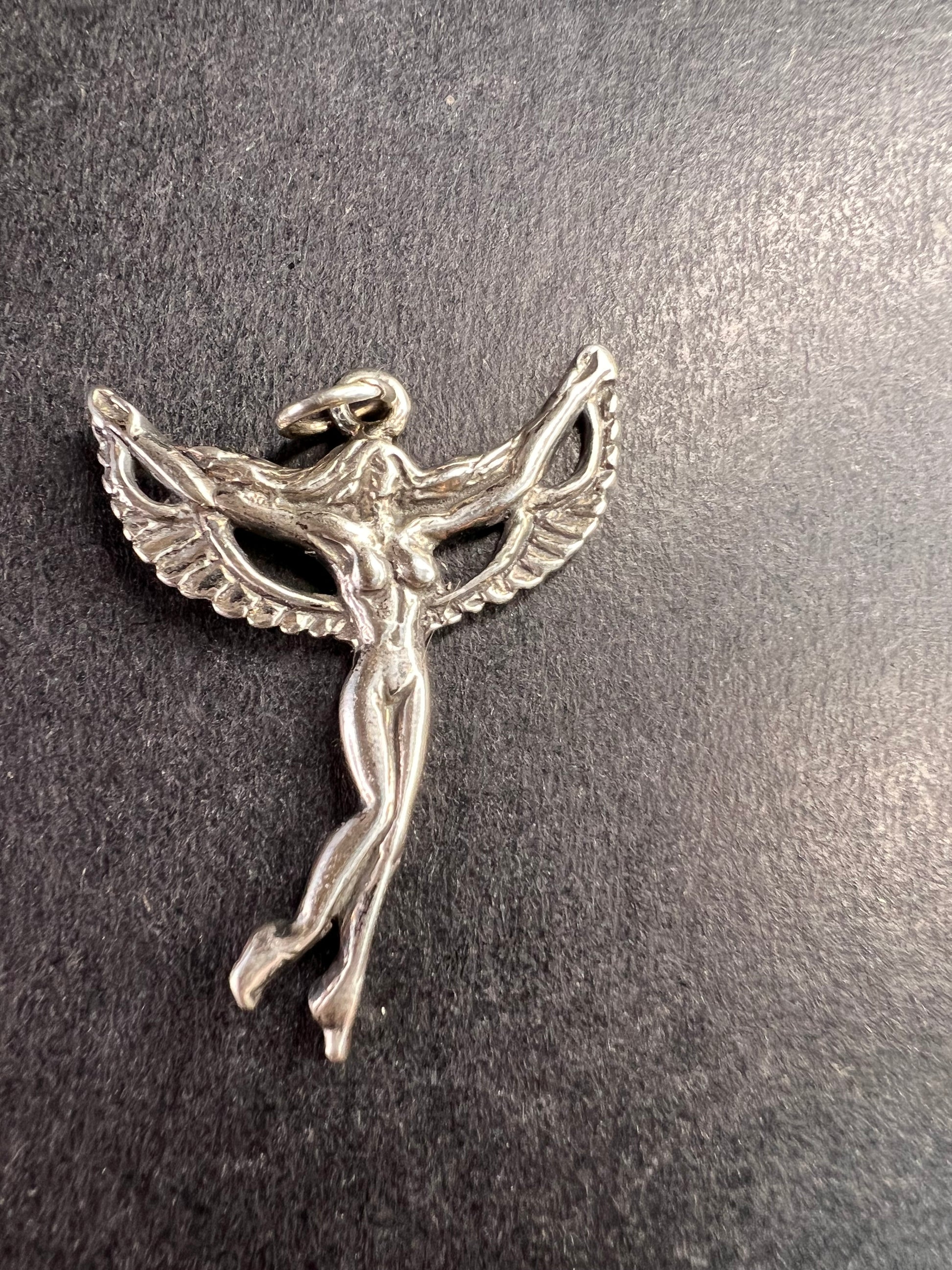 Vintage Sterling Silver Winged Goddess Angel Pendant 2.55g