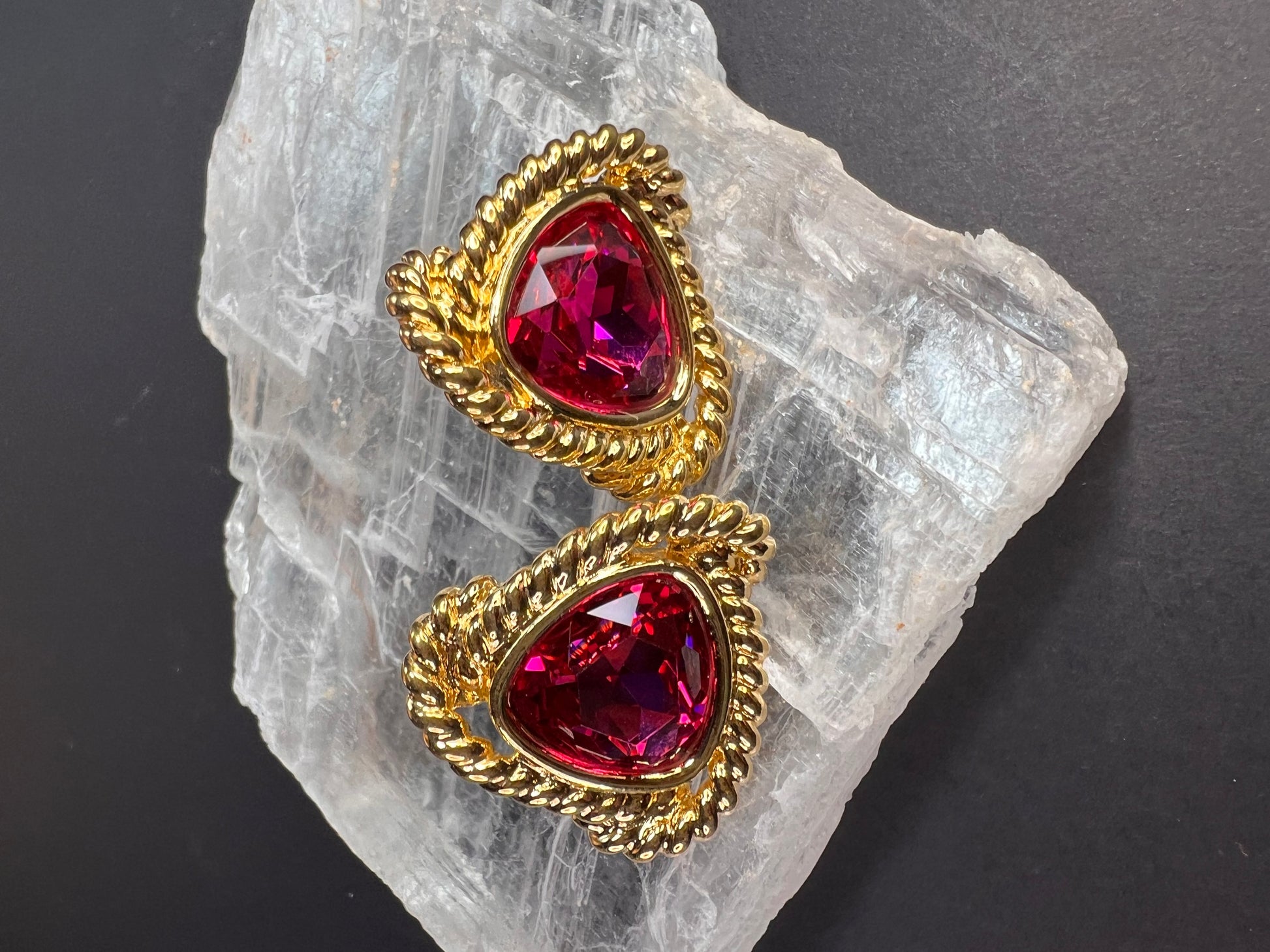 Vintage Swarovski Magenta Crystal Gold Tone Rope Post Earrings