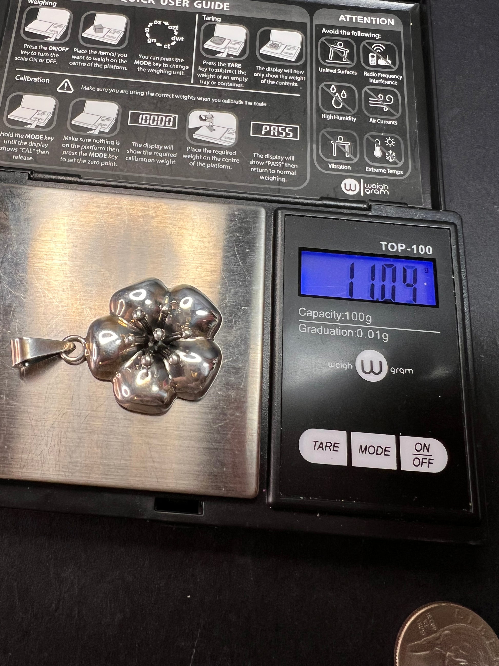 Genuine 925 sterling silver Taxco, Mexico pendant weighing 11.09 grams. I believe this is hollow. Sturdy construction. 925 CII Mexico.