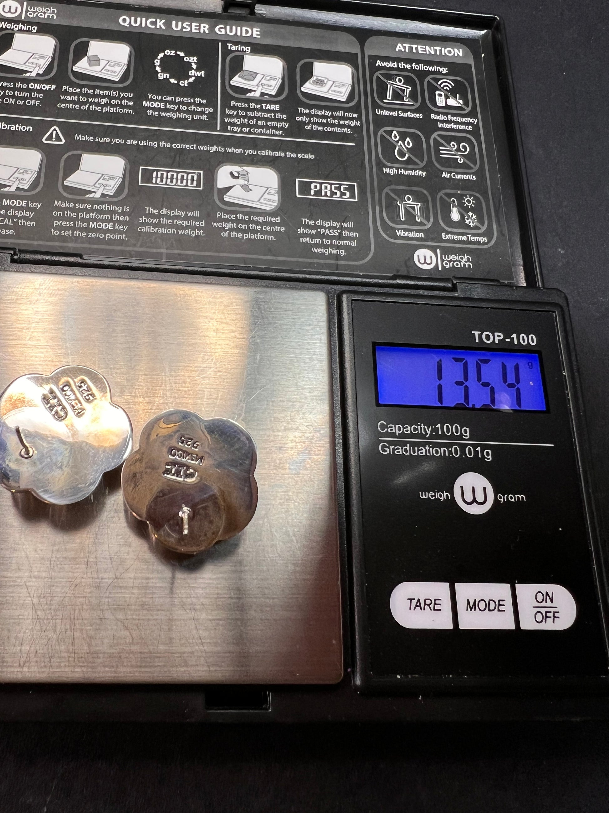 Genuine 925 Taxco, Mexico sterling silver flower earrings with pierced posts. Total weight is 13.54 grams. 925 CII Mexico. I believe these are solid and not hollow.
