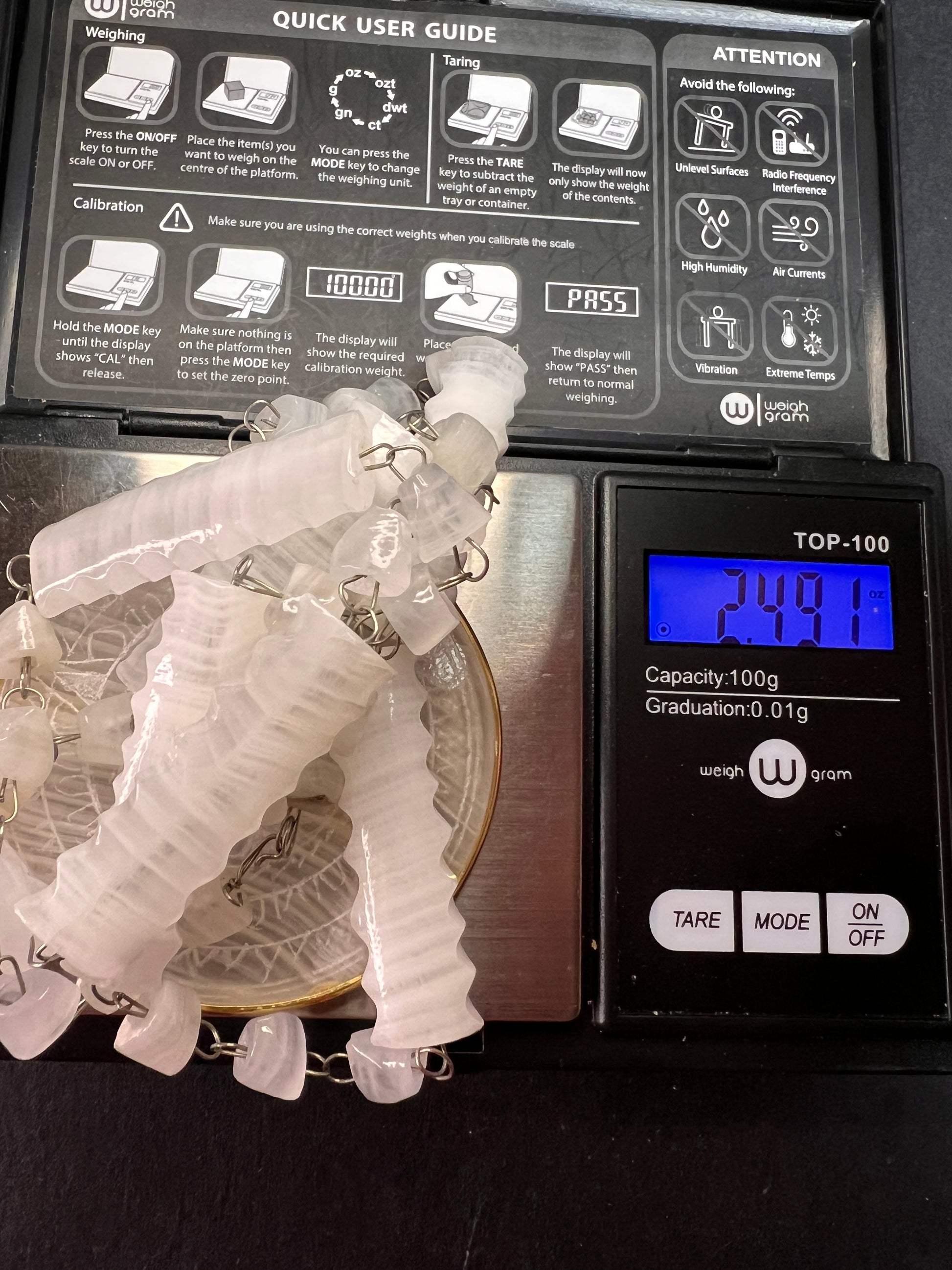 White onyx beads and medallion pendant on a 26 inch necklace. Not sure what metals are but gold and silver toned is all I know of. Definitely not precious metals. Aztec sundial face type on the medallion. Not sure of the era but guessing 60s-70s. I believe this was made in Mexico.