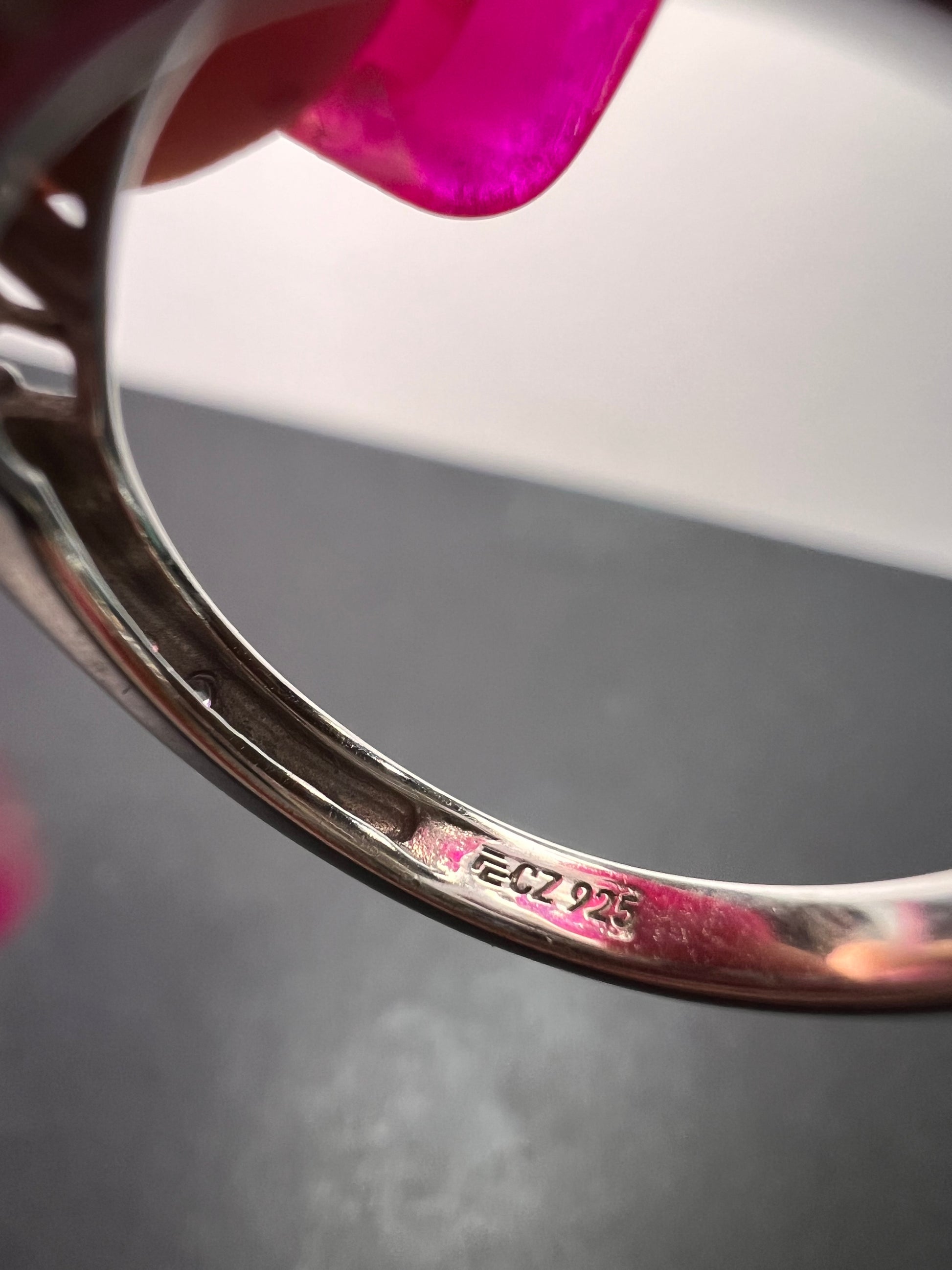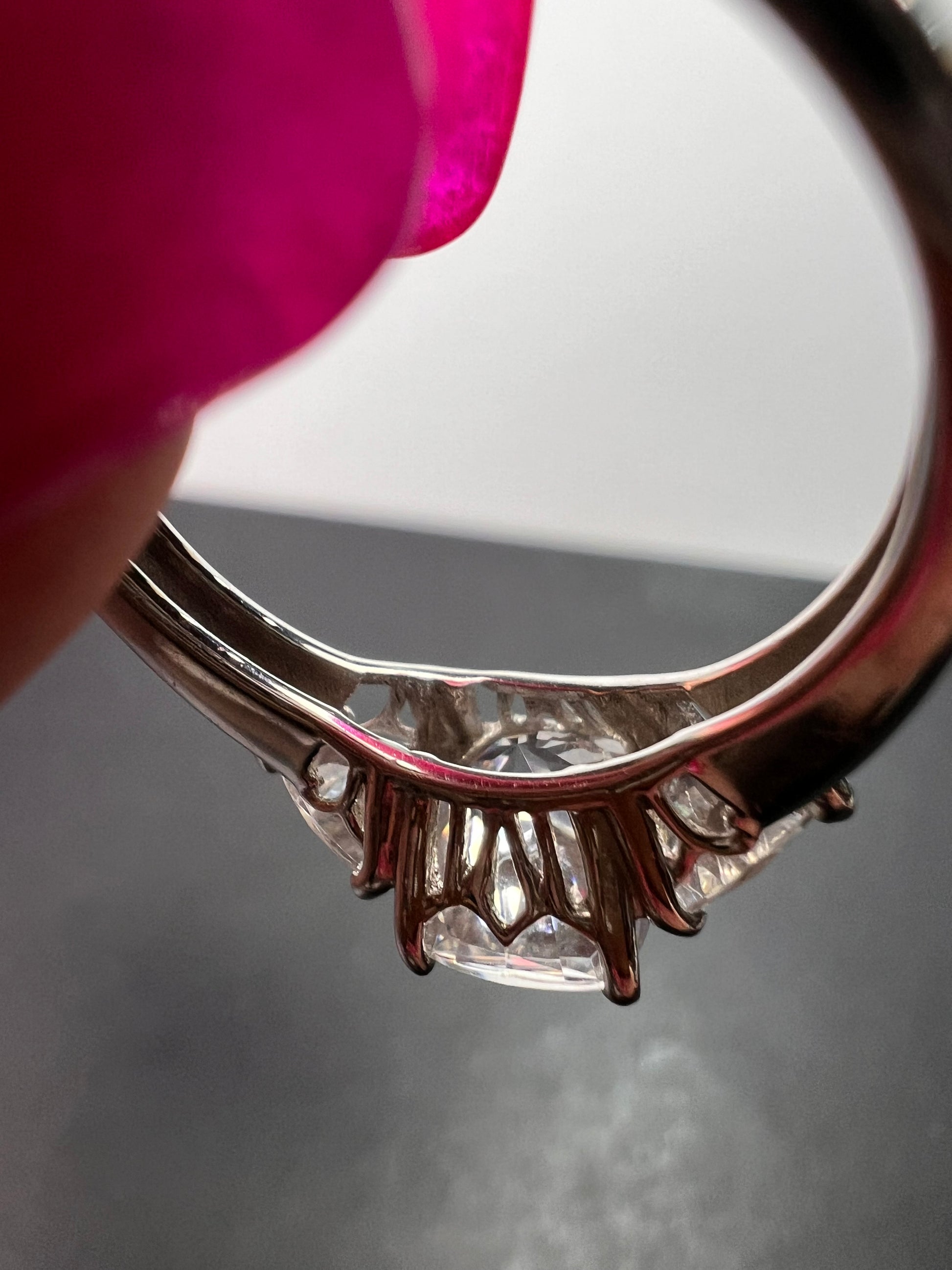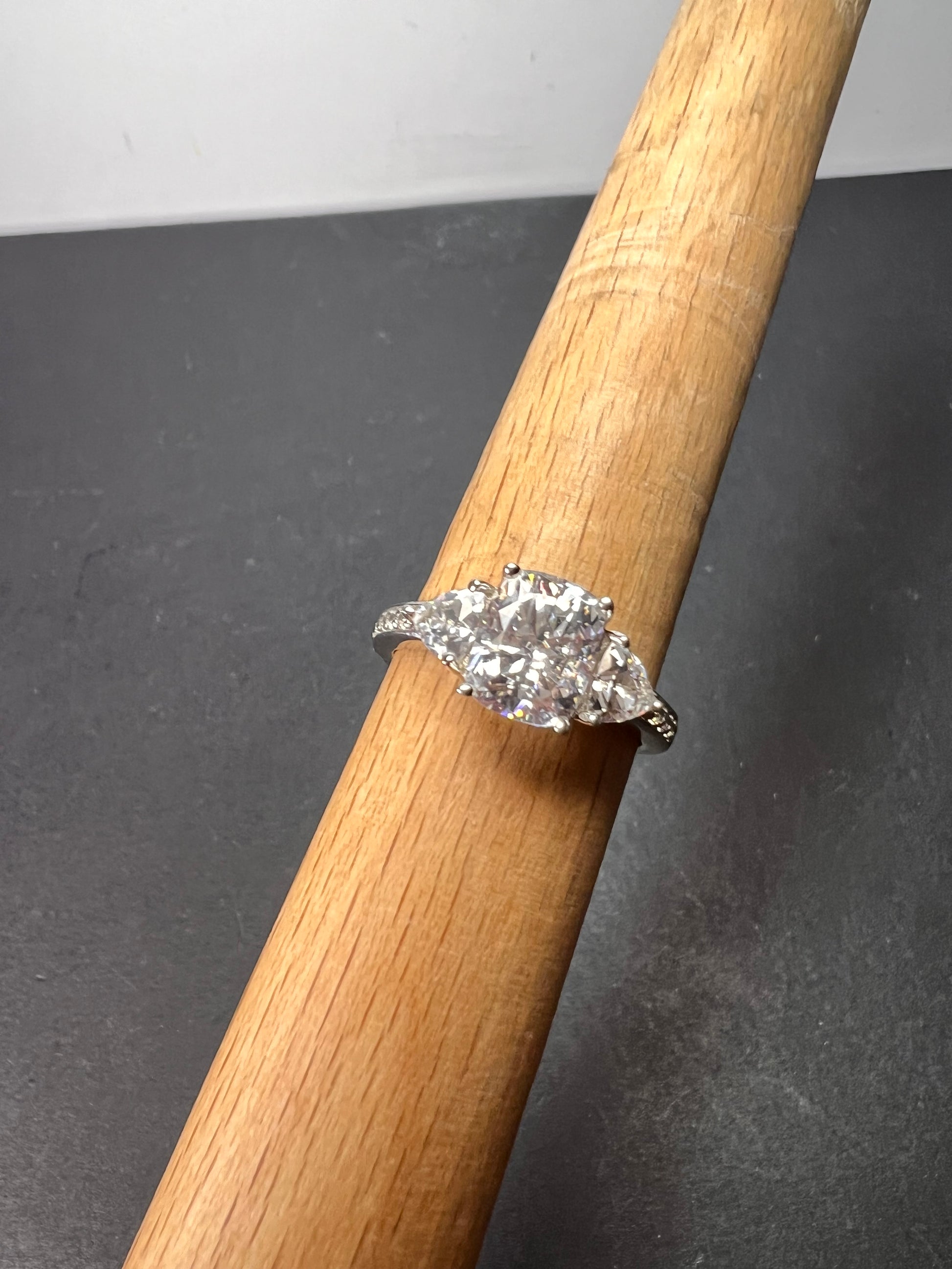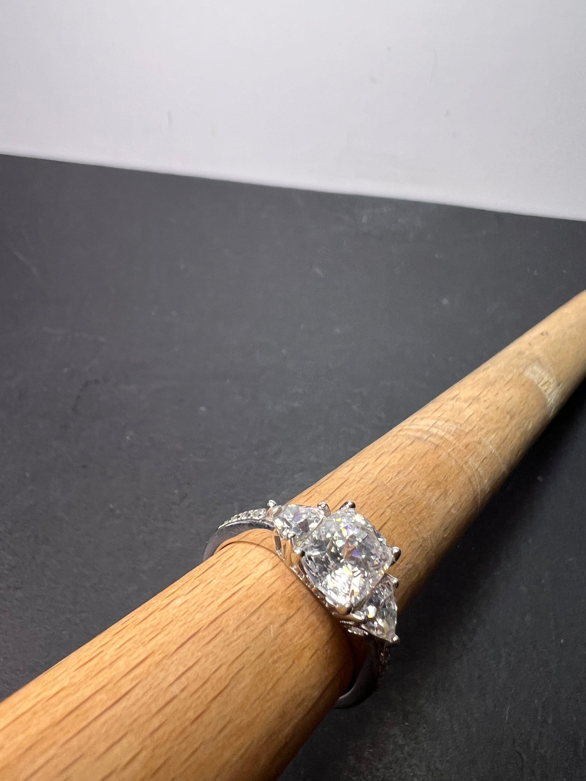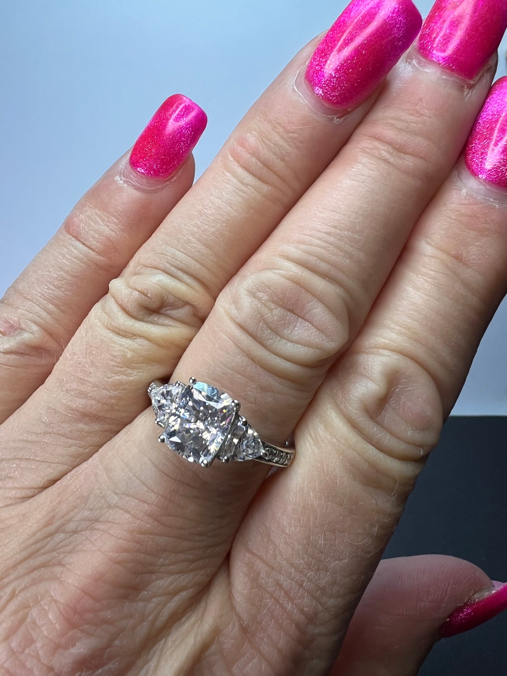 Charles Winston for Bella Luce. believe this ring was part of a set originally but I don’t have a band that matches and fits it. This is platinum plated over sterling silver. White cubic zirconia stones , rectangular cushion, trillion, and round. Size 9. Stamped Vietnam 925