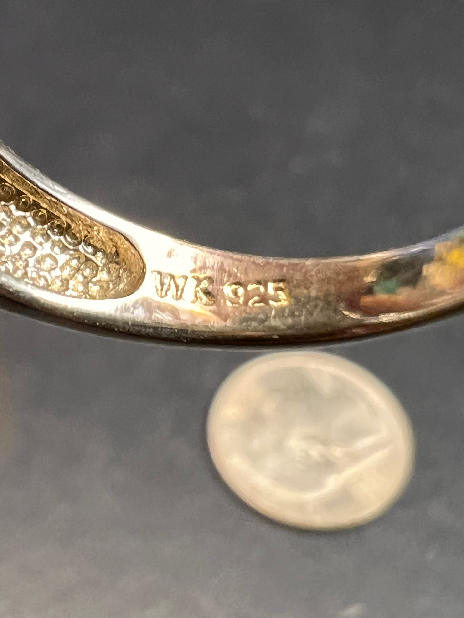 Designer Whitney Kelly stamped signed WK in authentic 925 sterling silver herb genuine tigers eye and mother of pearl inlays. Measures a size 7. Total weight is 5.92 grams.