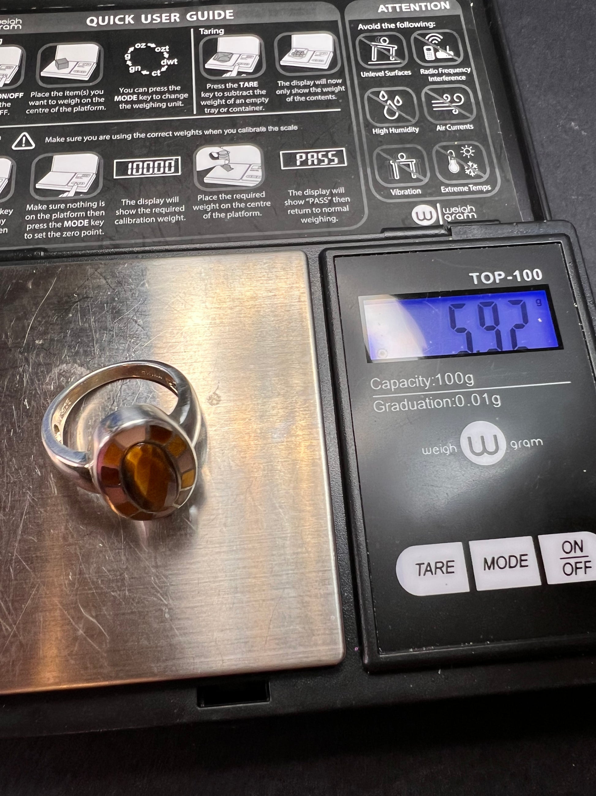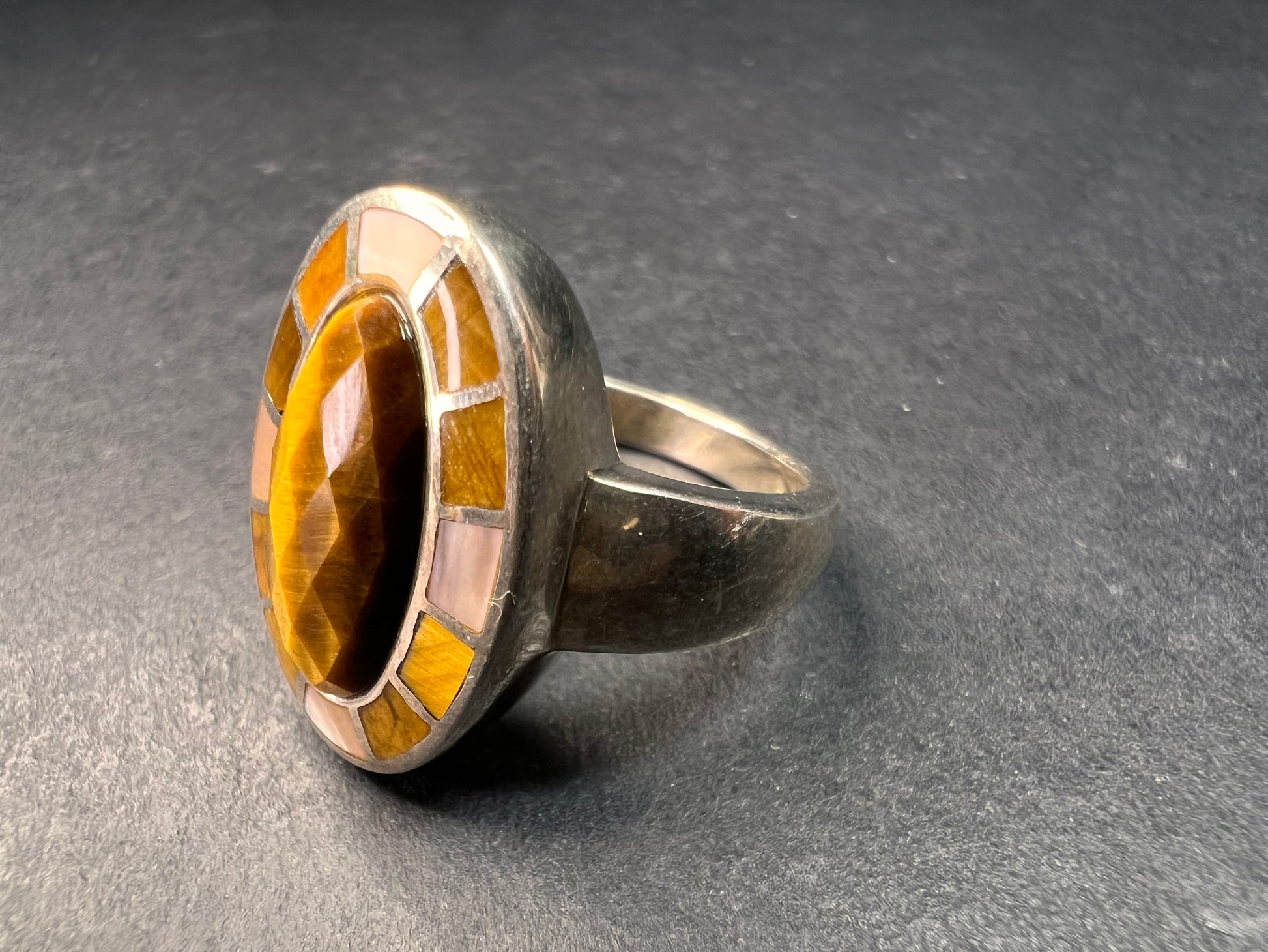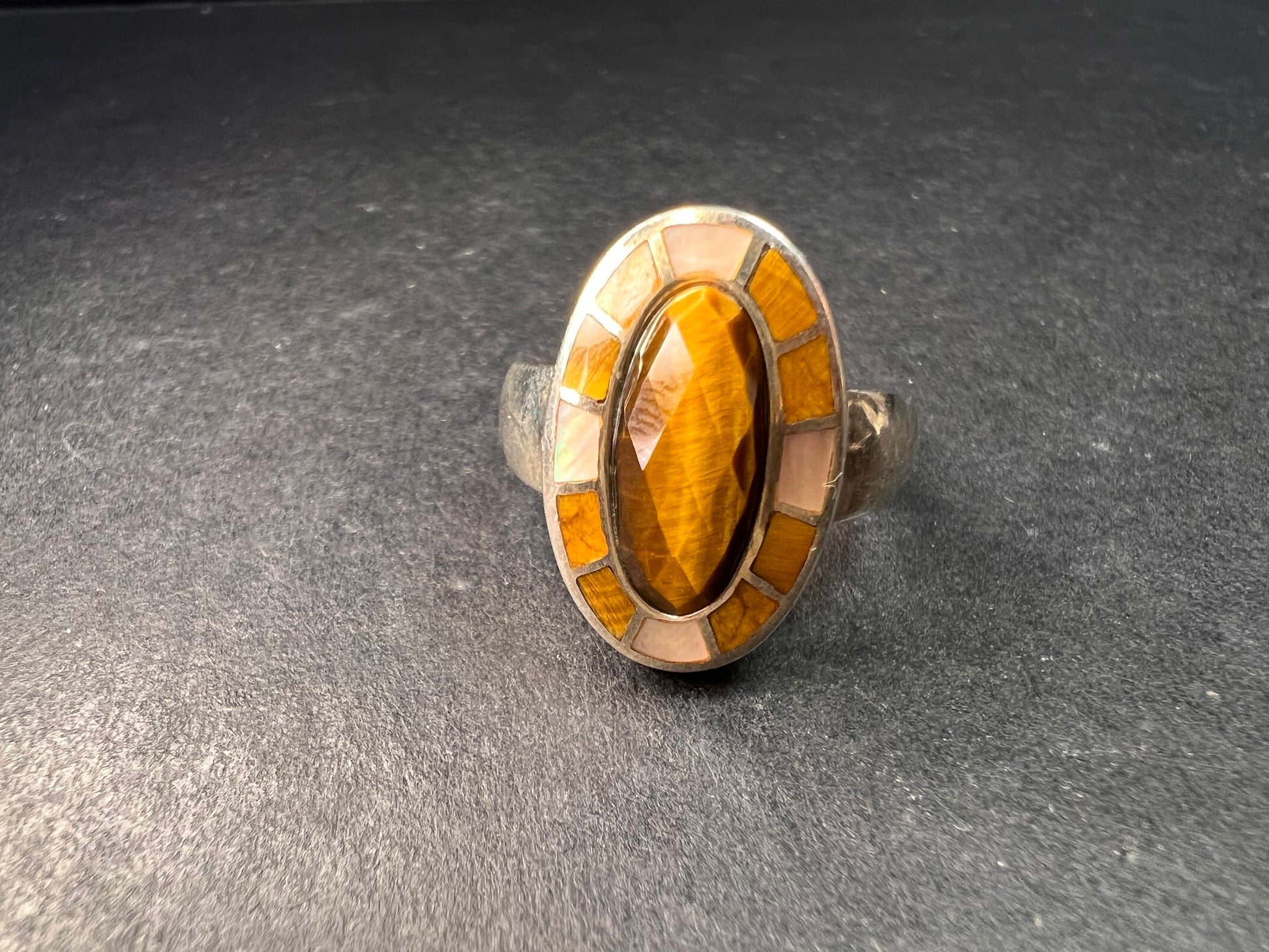 Whitney Kelly tigers eye and mother of pearl sterling silver ring size 7